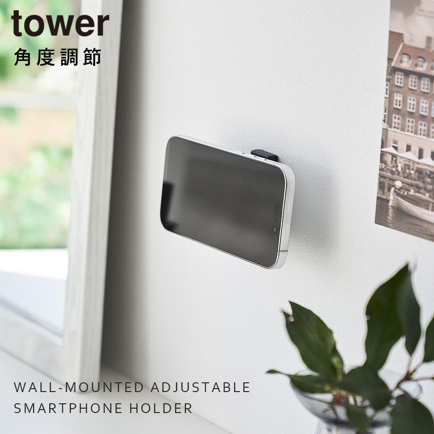 角度が調節できる壁付けスマホホルダー タワー 山崎実業 tower スマホ スタンド 壁 壁掛けホルダー おしゃれ モノトーン ホワイト ブラック 10434 10435