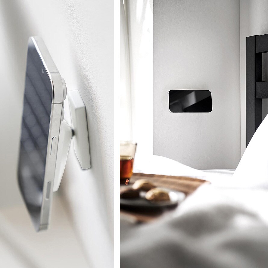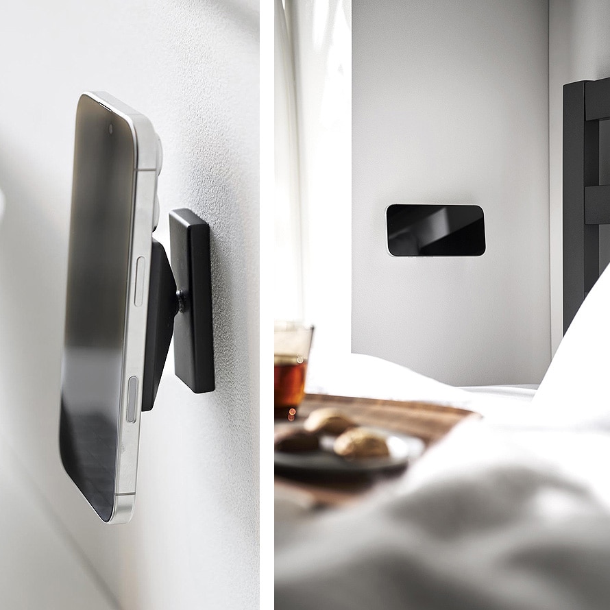 スマートフォンをお好みの角度に調節できる、壁付けホルダーです。