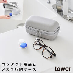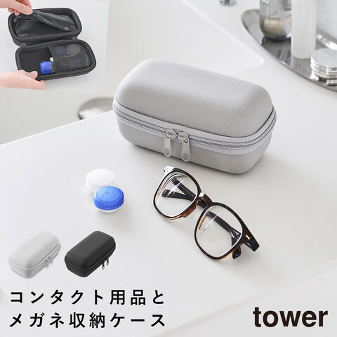 メガネとコンタクトレンズ用品が収納できるメガネケース タワー 山崎実業 tower コンタクト ケース 持ち運び メガネケース 収納 旅行 おしゃれ モノトーン ライトグレー ブラック 10438 10439