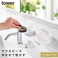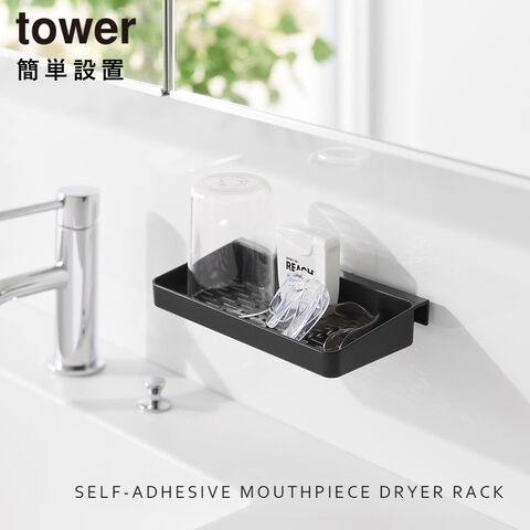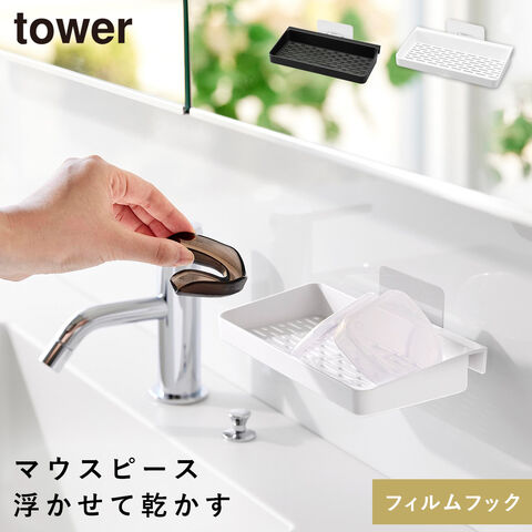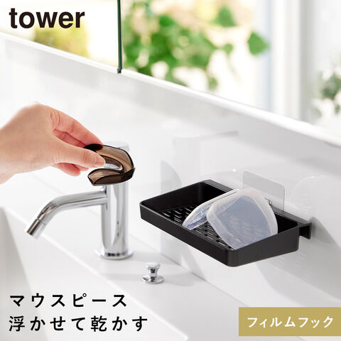 フィルムフックマウスピース水切りラック タワー 山崎実業 tower 洗面台 収納 ラック 浮かせる収納 おしゃれ モノトーン ホワイト ブラック 10449 10450