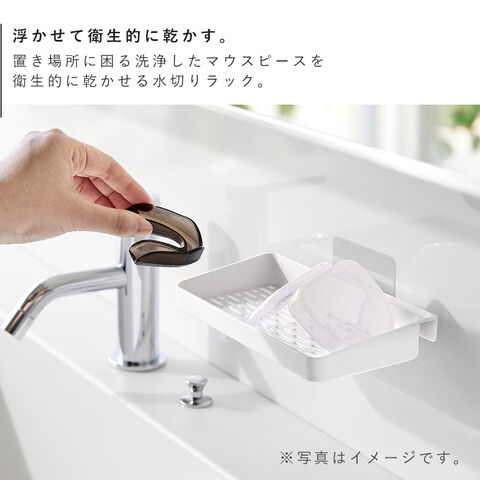 フィルムフックで簡単に取り付けできる、マウスピース水切りラックです。