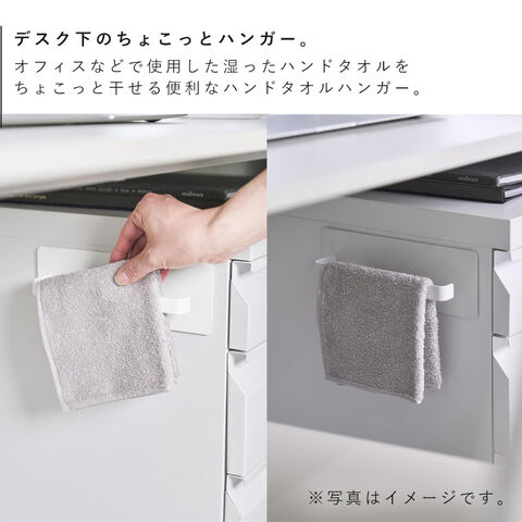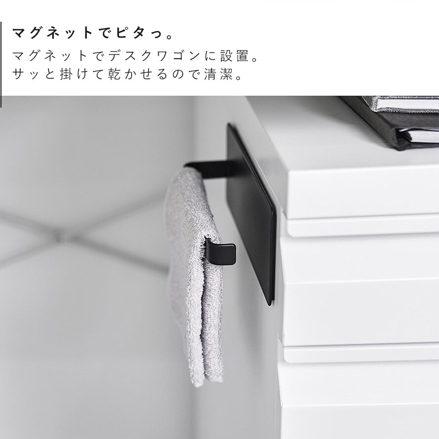デスクワゴンにマグネットで取り付けできる便利なタオルハンガーです。