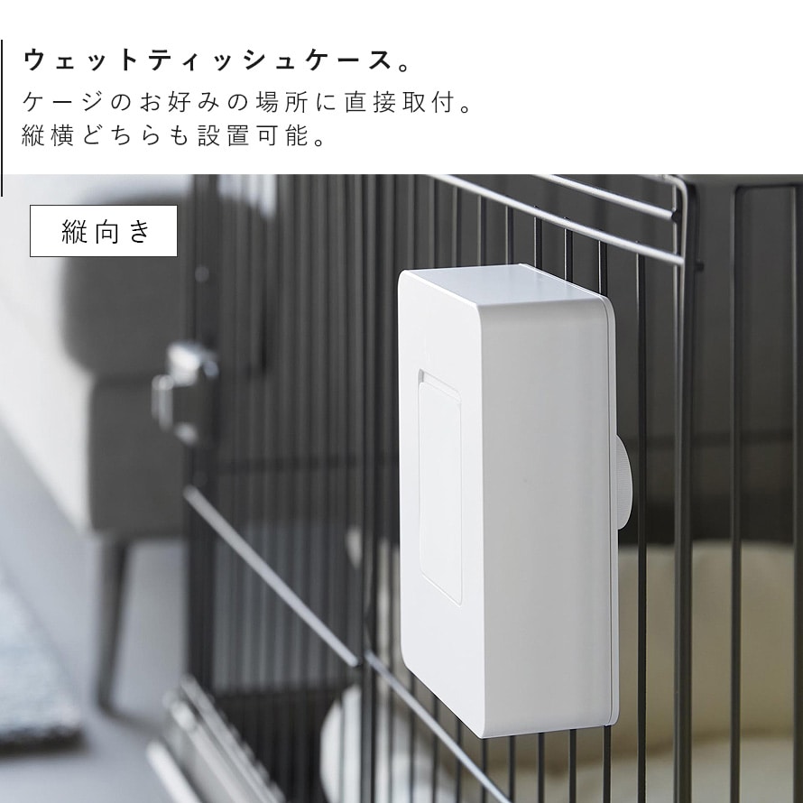 ペットケージに簡単に取り付けできるウェットティッシュケースです。