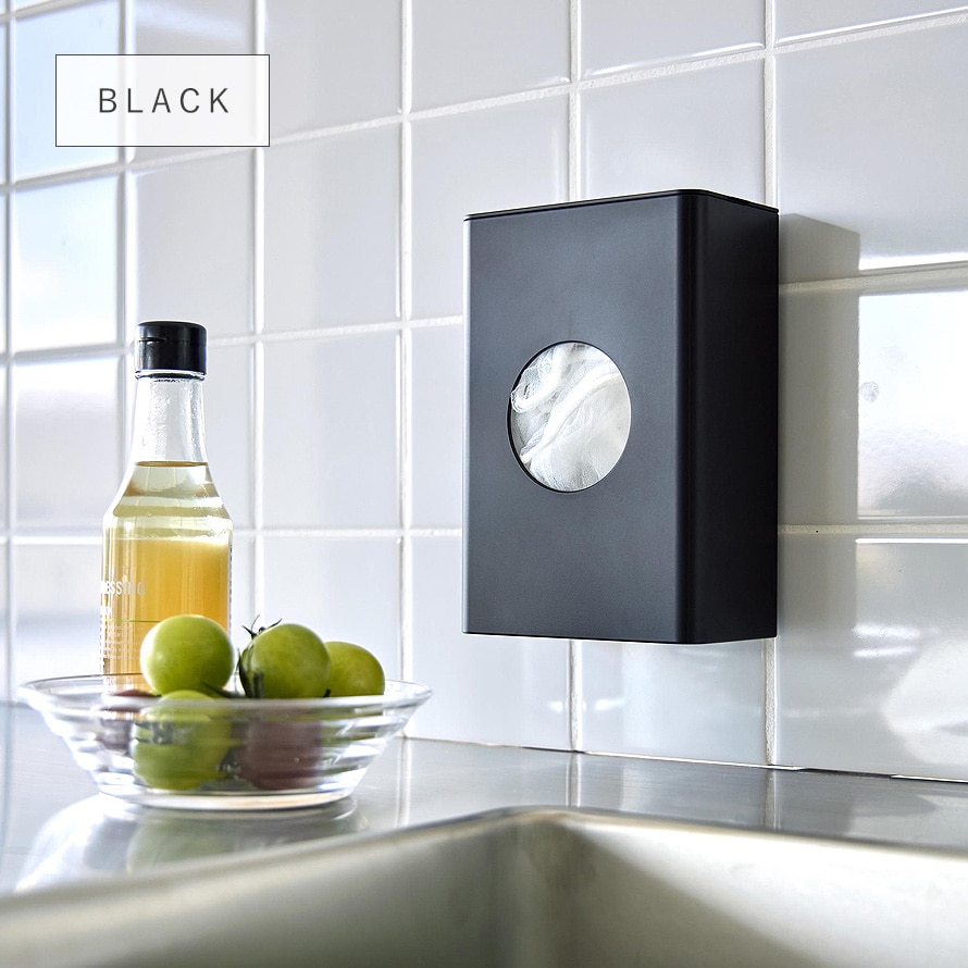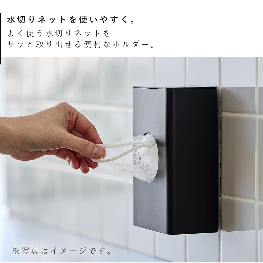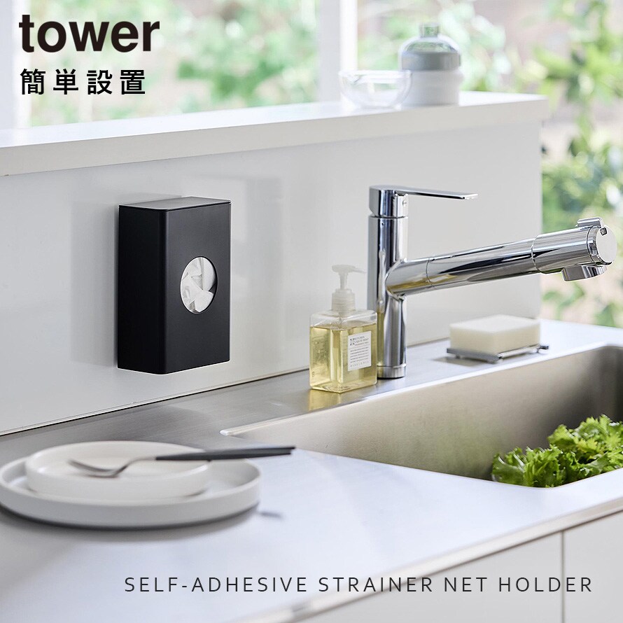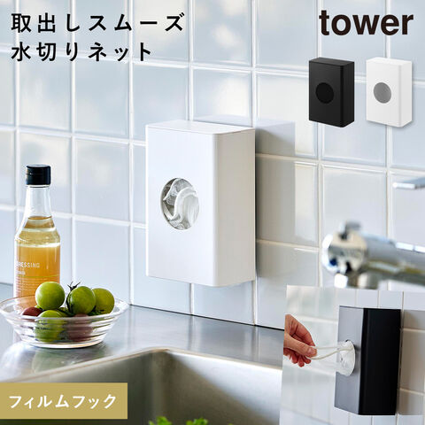 【ポイント5倍】フィルムフック水切りネットホルダー タワー 排水口 水切りネット ホルダー キッチン 壁 収納 ポリ袋ストッカー キッチン おしゃれ モノトーン ブラック ホワイト 10466 10467