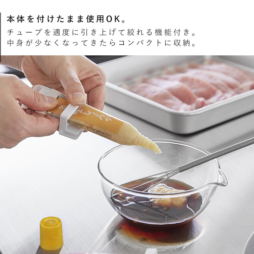 容量が少なくなり飛び出した薬味チューブは、折り曲げて収納することができます。
