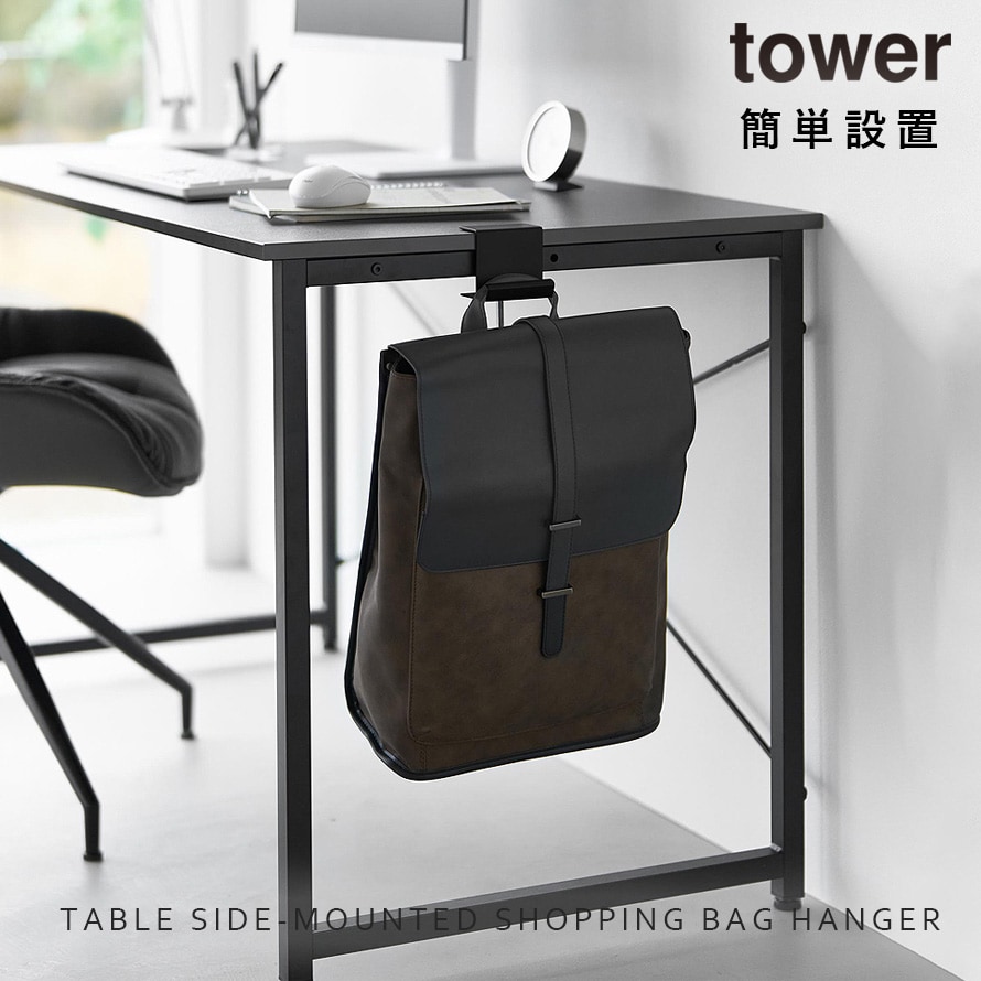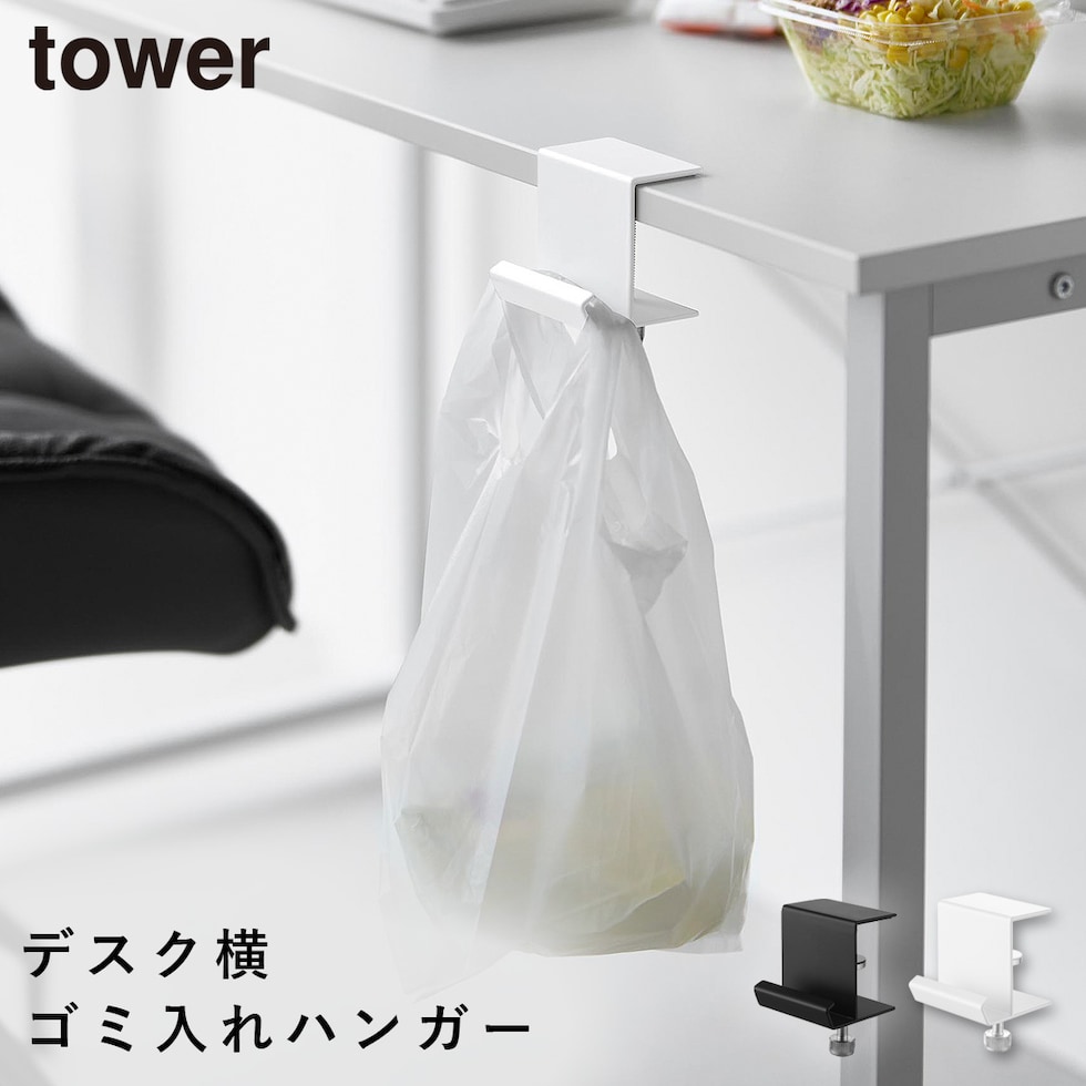 テーブル横レジ袋ハンガー タワー 山崎実業 tower レジ袋ハンガー ゴミ箱 オフィス デスク バッグハンガー おしゃれ モノトーン ホワイト ブラック 10482 10483