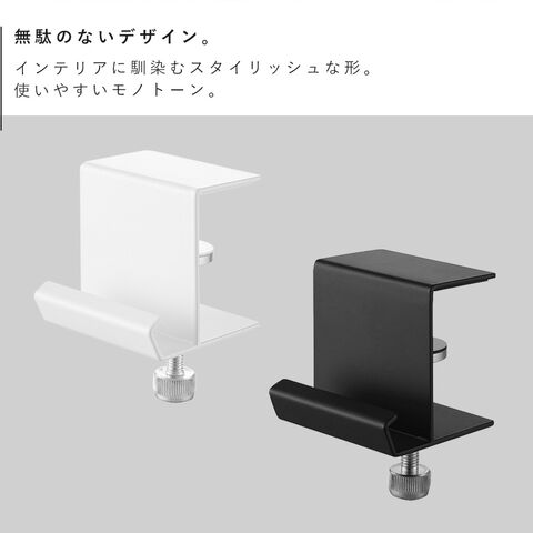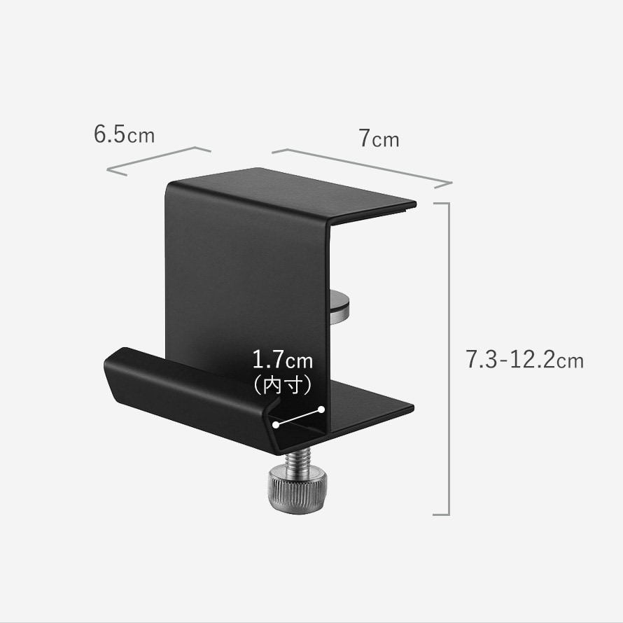| 取り付け可能な場所 | 天板の厚さが1.2~5.5cm(幕板やパイプ等含む) 幅7cm以上(脚含まず) 奥行き3.7cm以上の平らなテーブルなど ※設置場所の構造や材質、形状によっては取り付けできない場合があります。 |