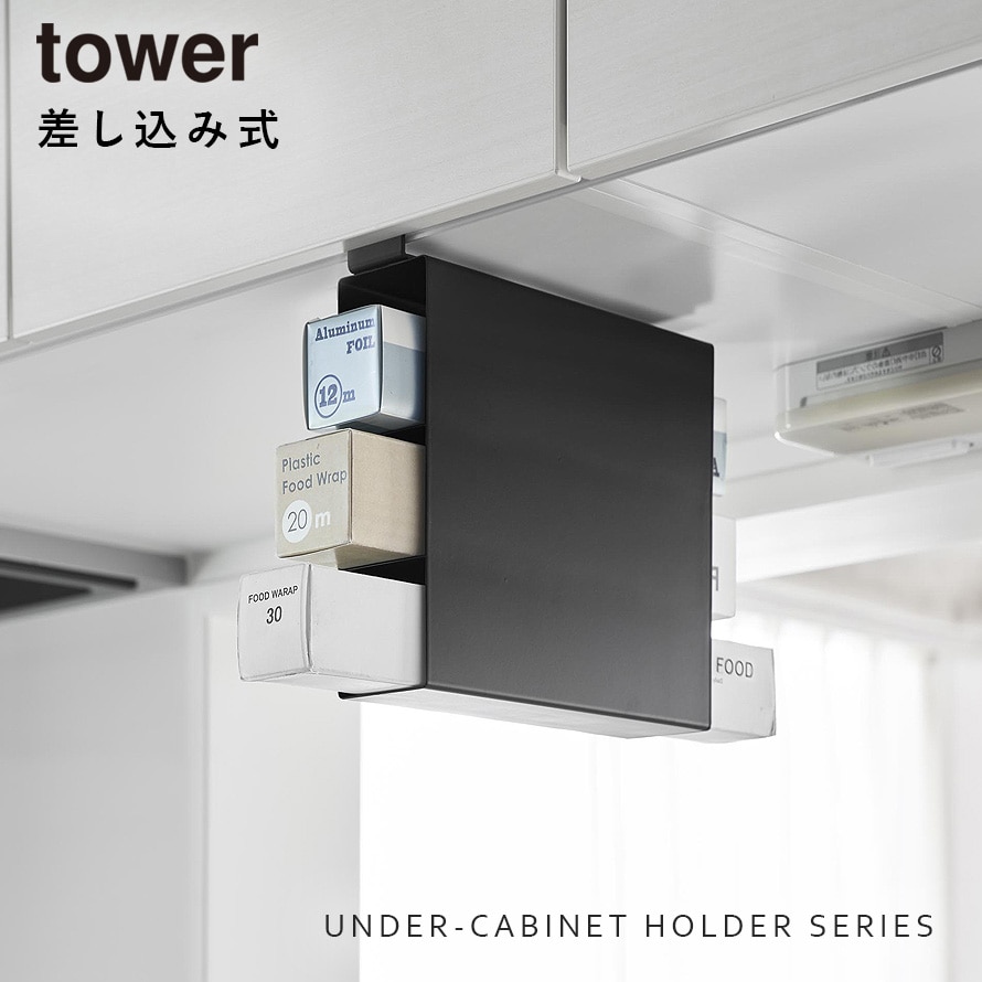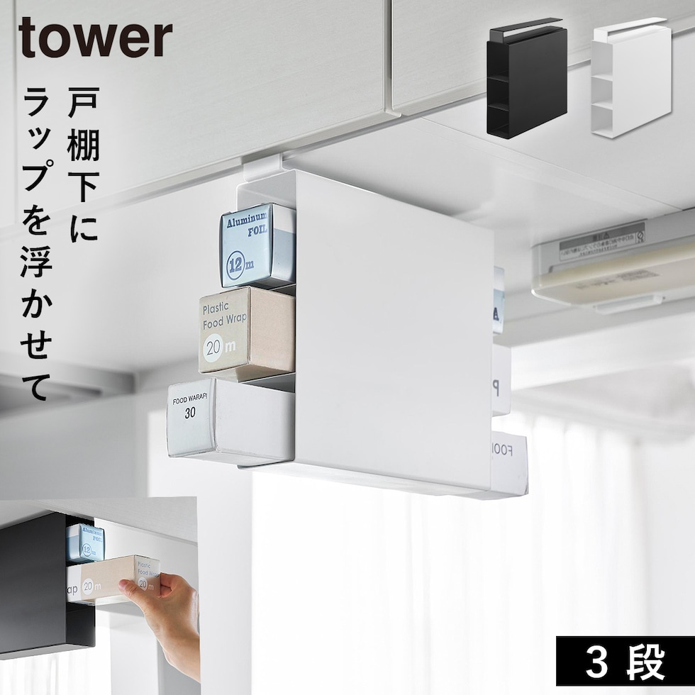 戸棚下ラップホルダー タワー 3段 山崎実業 tower 棚下 ラップホルダー 吊り戸棚 おしゃれ モノトーン ホワイト ブラック 10505 10506