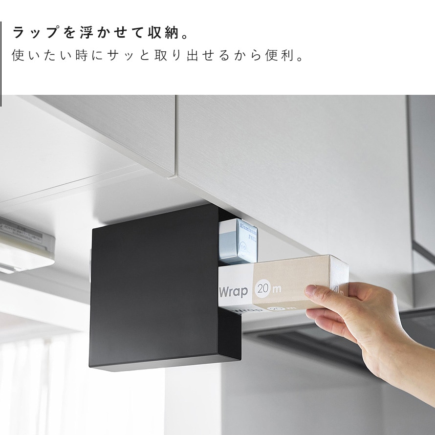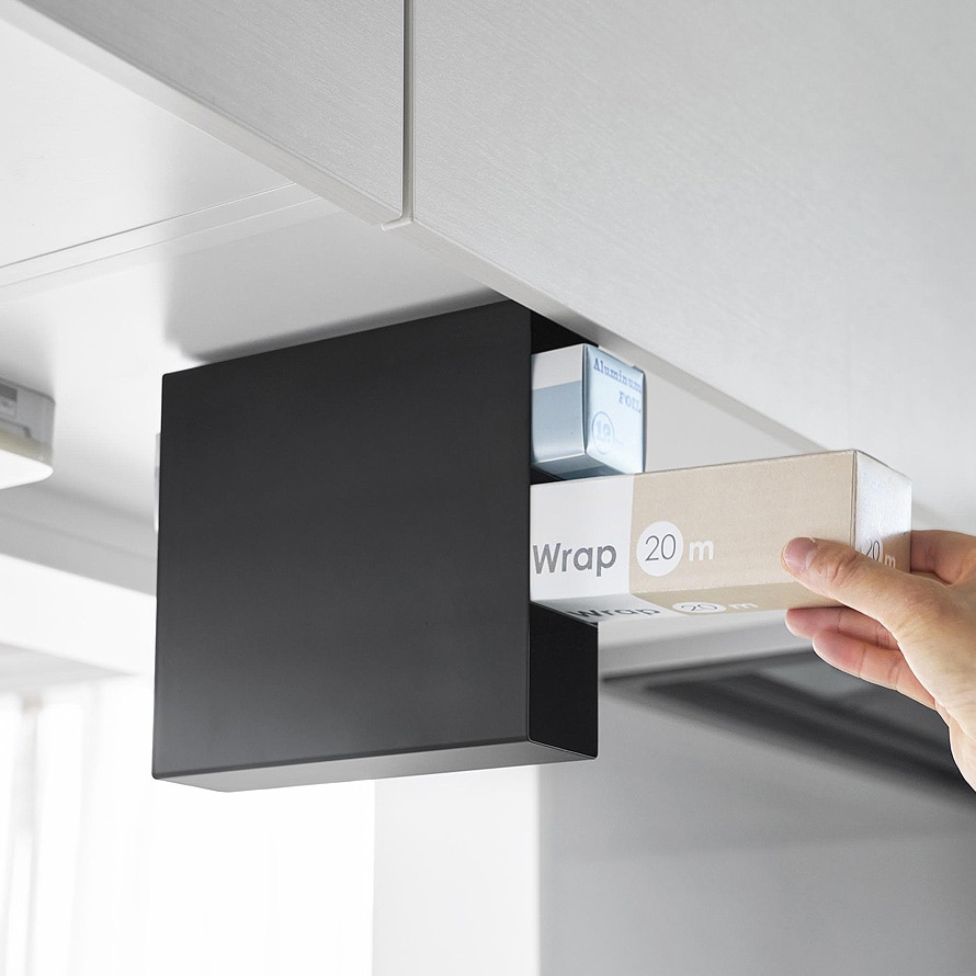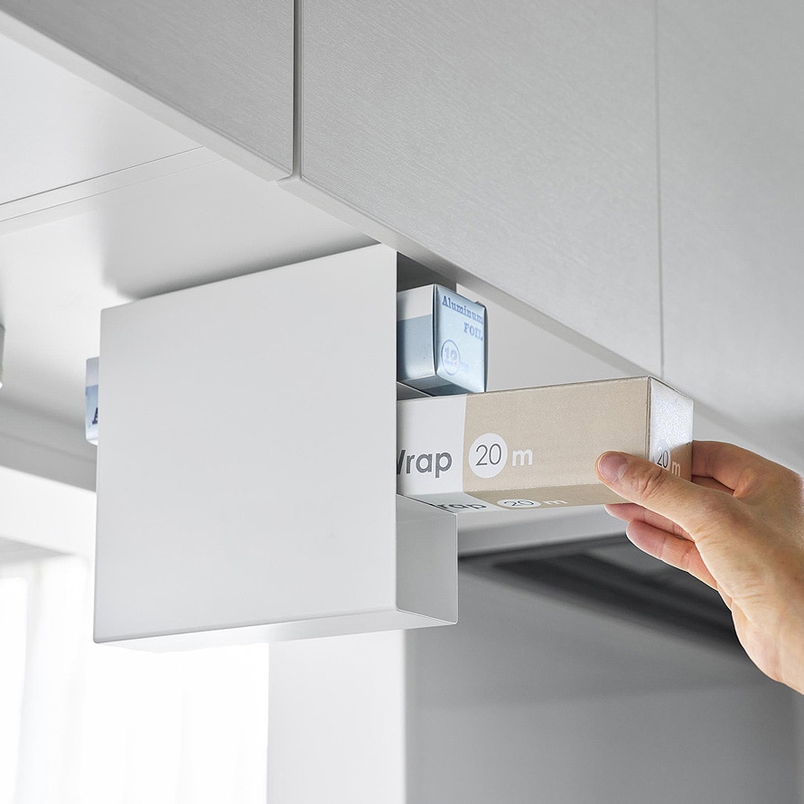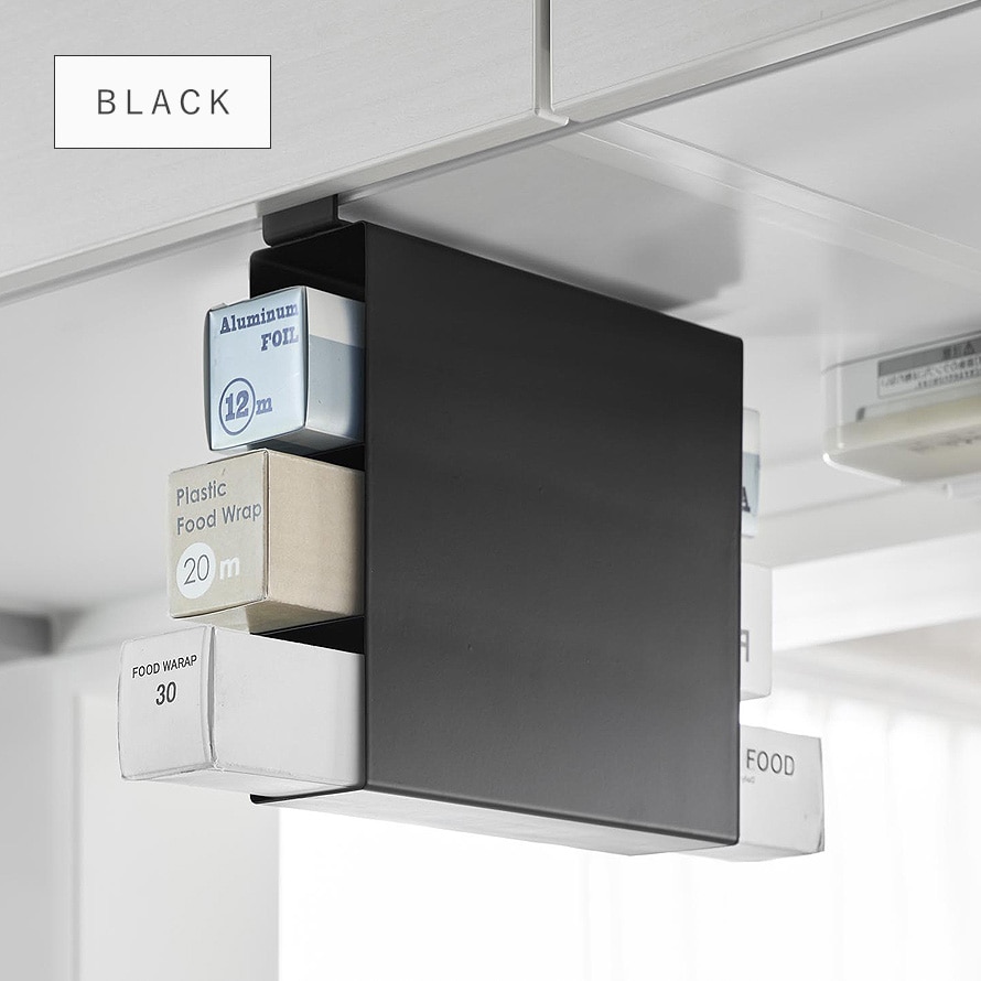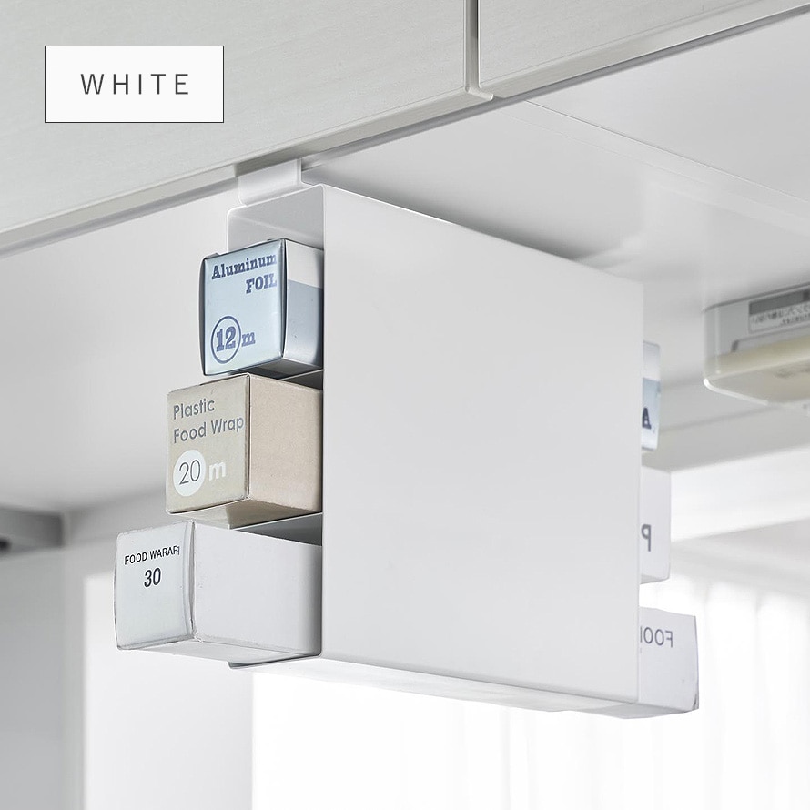 置き場所に困るラップやアルミホイルなどを浮かせて収納できます。