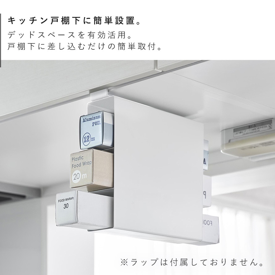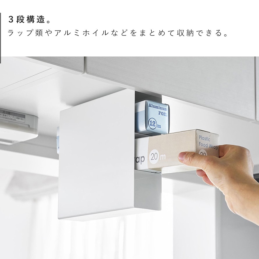 戸棚下に差し込むだけで設置できるラップホルダー3段。