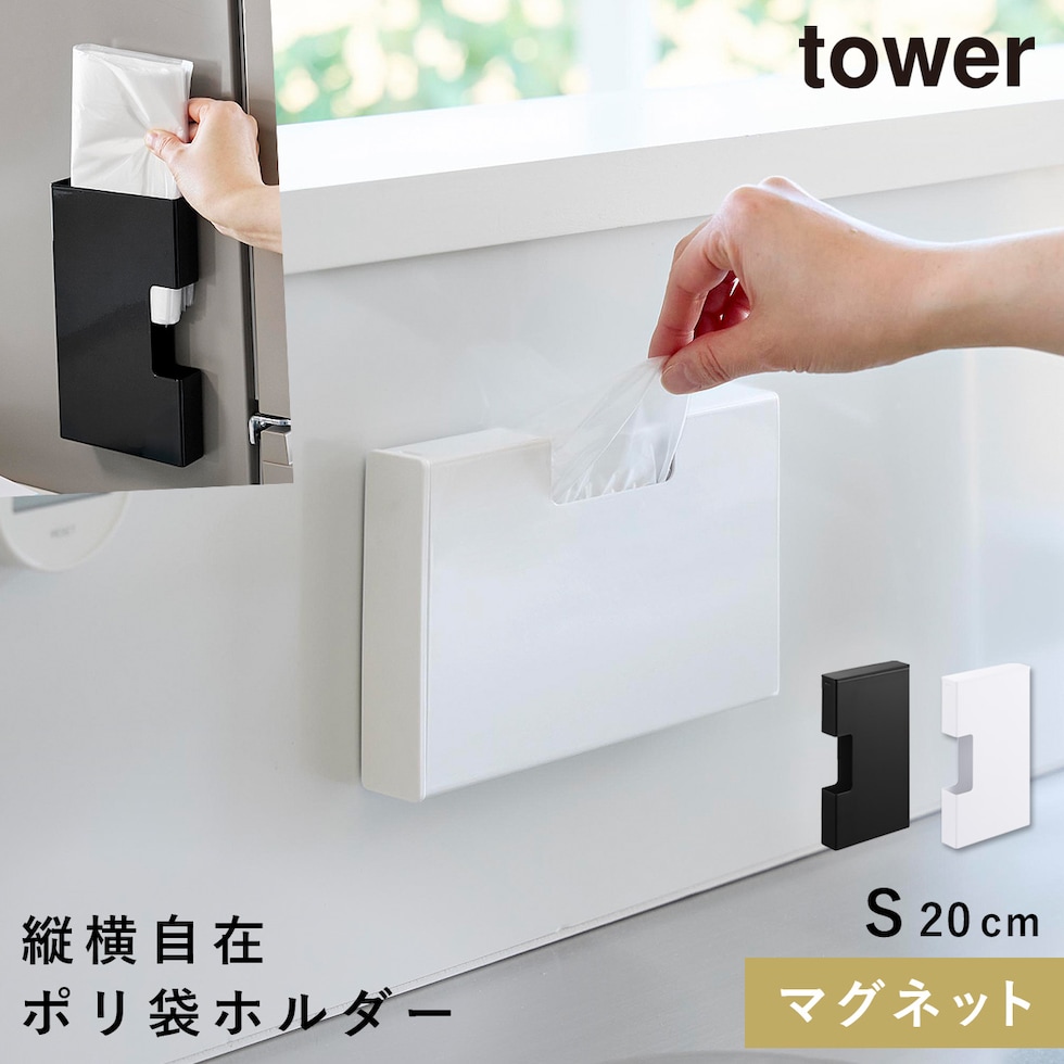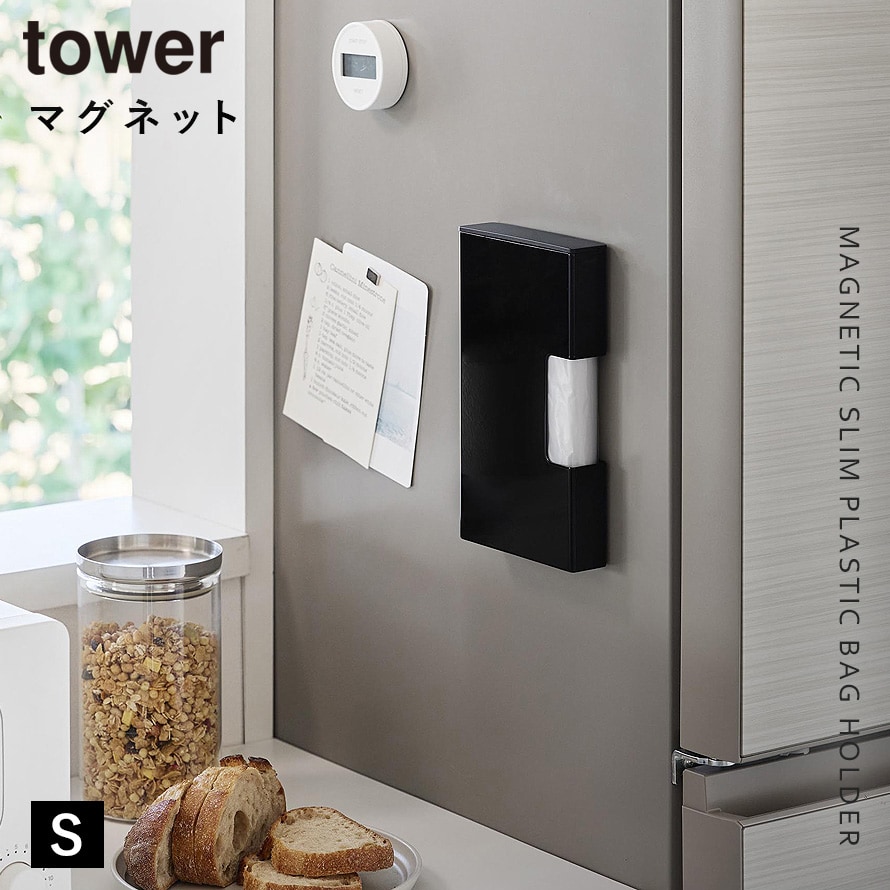 マグネットスリムポリ袋収納ホルダー タワー S 山崎実業 tower ポリ袋ホルダー ポリ袋ストッカー マグネット 収納 ケース おしゃれ モノトーン ホワイト ブラック 10509 10510