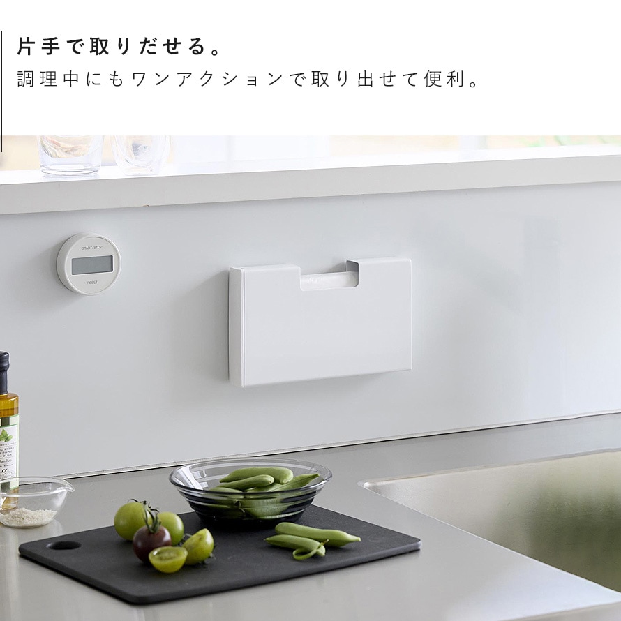 縦横お好みの向きに取り付けられ、調理中も片手ですばやく取り出せて便利です。