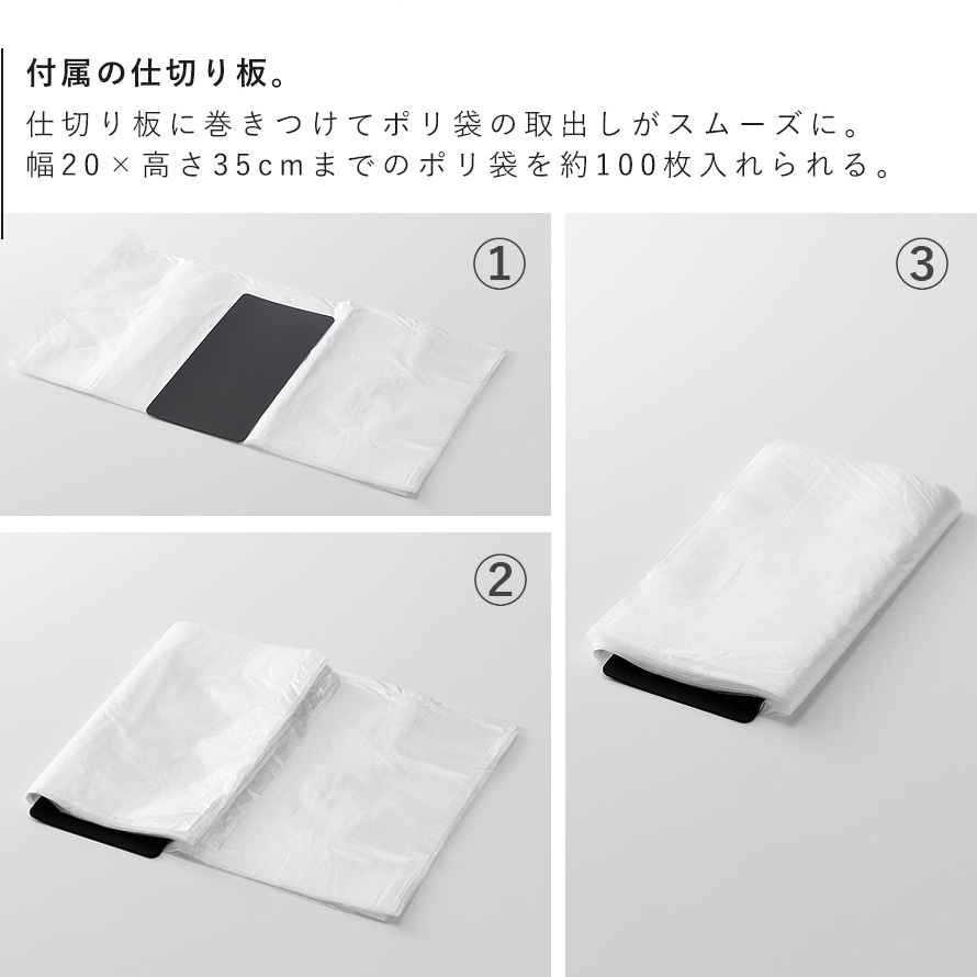 付属の仕切り板に巻きつけることで、ポリ袋をスムーズに取り出せます。