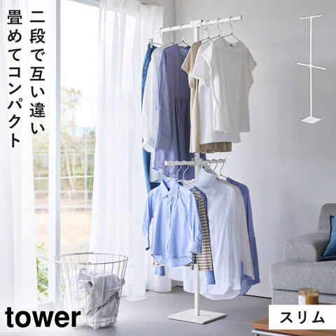 【ポイント5倍】[折り畳み室内物干し タワー スリム]山崎実業 tower 部屋干し 物干し スタンド 室内干し スリム 花粉 黄砂 梅雨 コンパクト おしゃれ 折りたたみ モノトーン yamazaki 公式 ホワイト ブラック 10517 10518