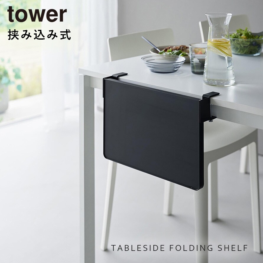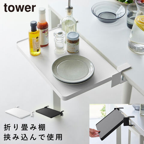 テーブル横折り畳み棚 タワー 山崎実業 tower キッチン 作業台 折りたたみ 折り畳み おしゃれ モノトーン ホワイト ブラック 10523 10524