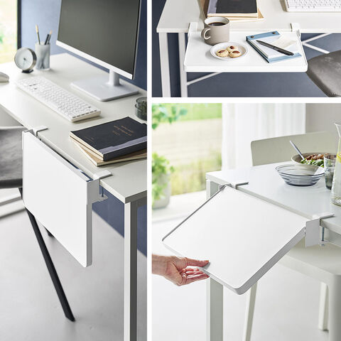デスク横に取り付ければ、作業スペースを広々と確保しながら、必要なときだけ棚を出して使うことができます。