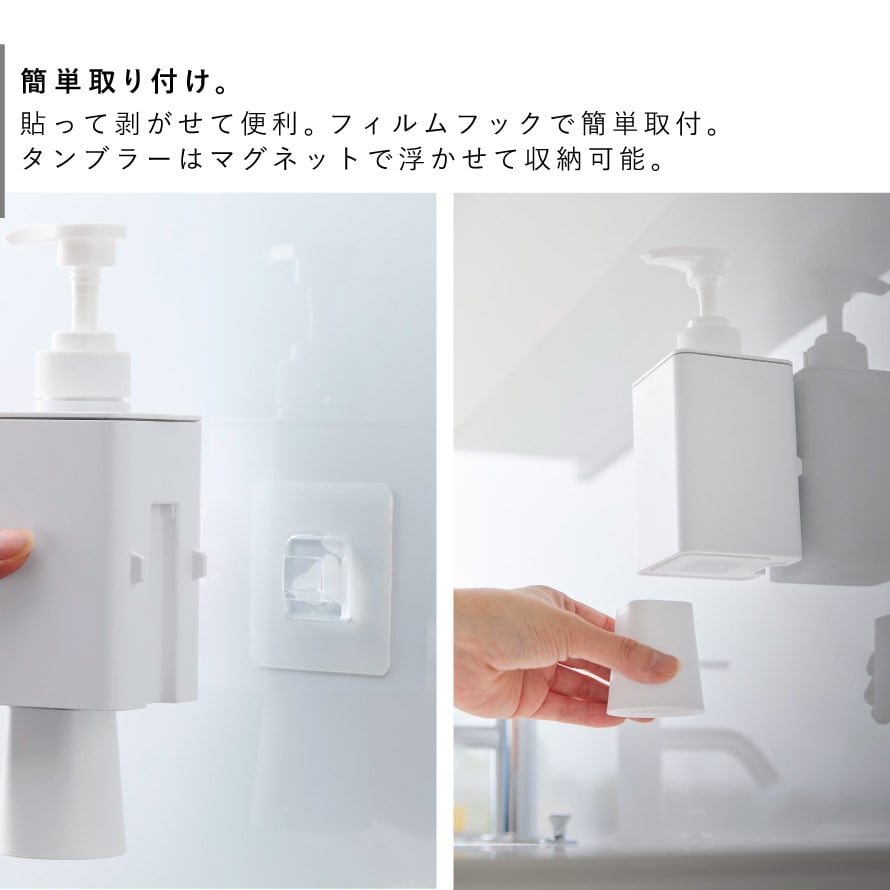 フィルムフックマウスウォッシュディスペンサー&ミニタンブラー タワー 山崎実業 tower マウスウォッシュ ディスペンサー 洗面 コップ 逆さ おしゃれ モノトーン ホワイト ブラック 10539 10540