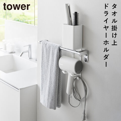 タオル掛け上ドライヤー&ヘアーアイロンホルダー タワー タワー 山崎実業 tower ドライヤー ホルダー タオル掛け ドライヤー収納 おしゃれ モノトーン ホワイト ブラック 10545 10546