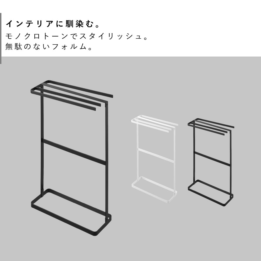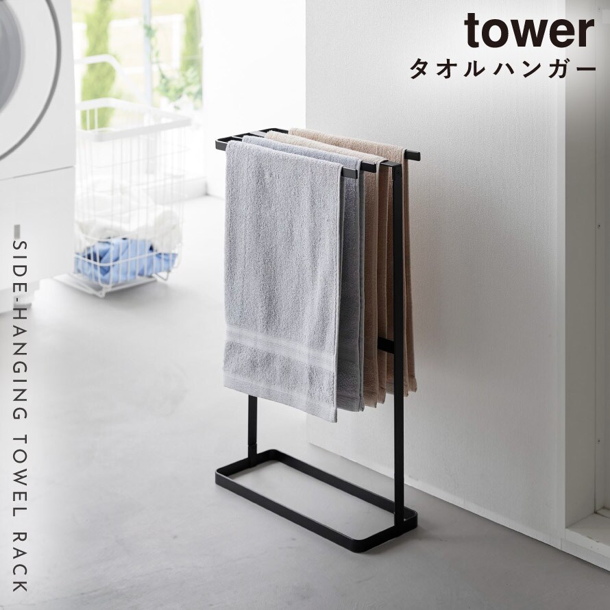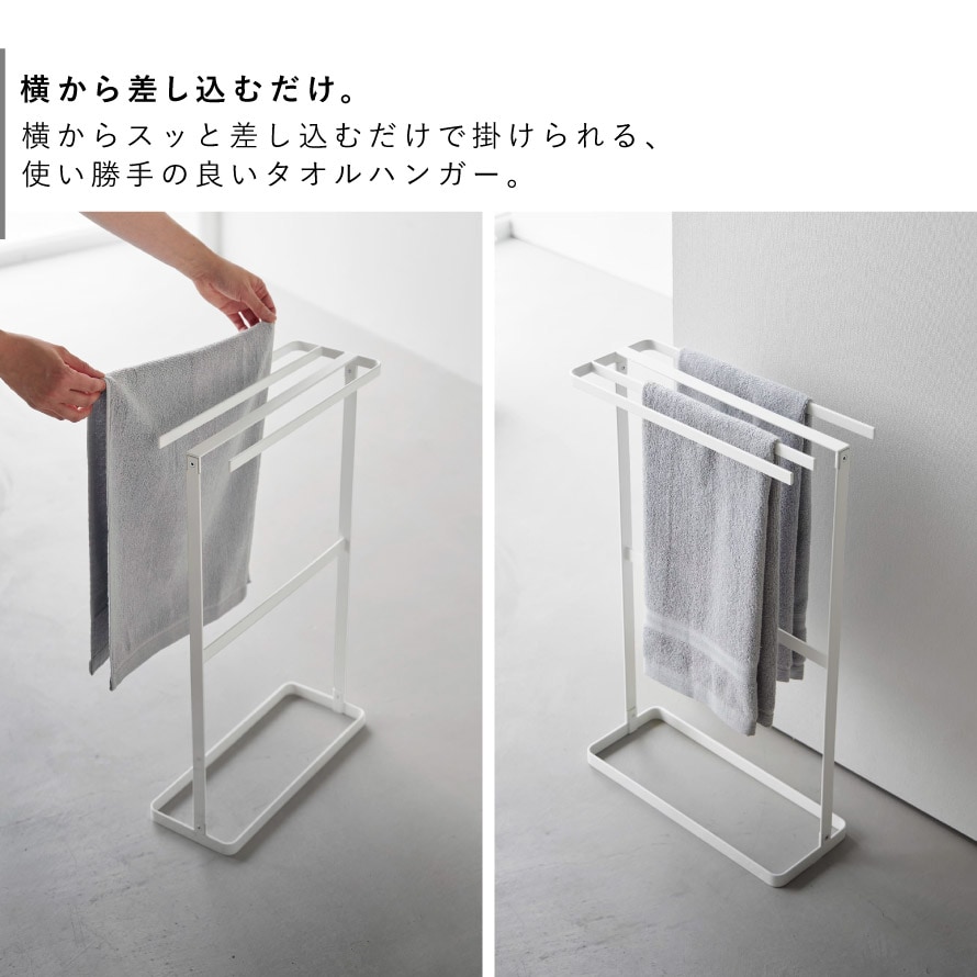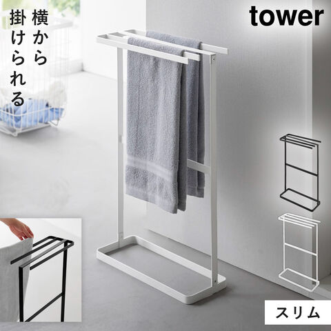 横から掛けられるタオルハンガー タワー 山崎実業 tower タオルスタンド スリム タオル干し ハンガー おしゃれ モノトーン ホワイト ブラック 10549 10550