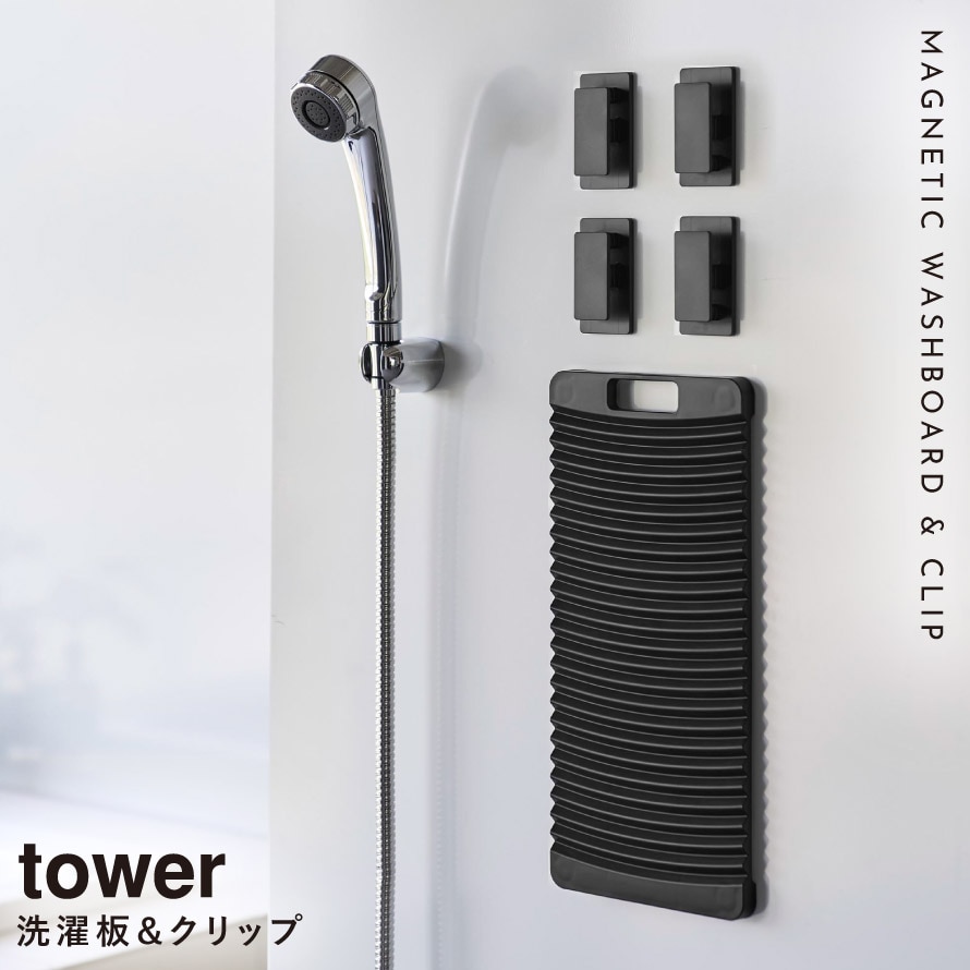【ポイント5倍】マグネット洗濯板&クリップ タワー 山崎実業 tower 洗濯板 靴下 野球 ユニフォーム 洗濯 泥汚れ おしゃれ モノトーン ホワイト ブラック 10553 10554