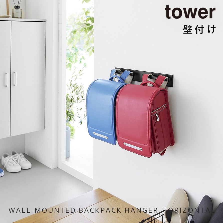 【ポイント5倍】壁付けリュックハンガー タワー 横型 山崎実業 tower リュック ランドセル ハンガー おしゃれ モノトーン ホワイト ブラック 10577 10578