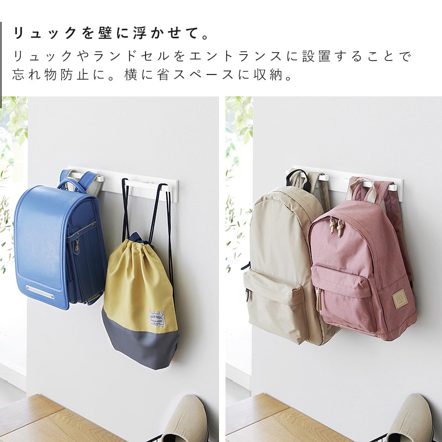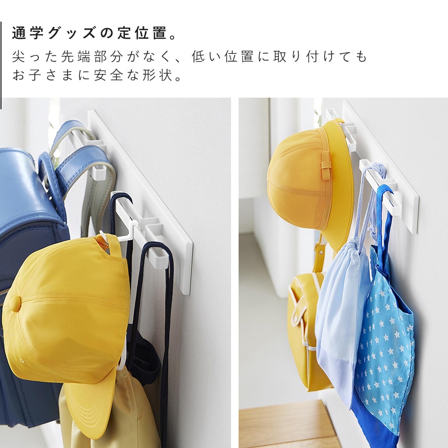 ランドセルや通園グッズ、バッグなどを掛けるのにもおすすめ。
