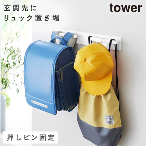 【ポイント5倍】壁付けリュックハンガー タワー 横型 山崎実業 tower リュック ランドセル ハンガー おしゃれ モノトーン ホワイト ブラック 10577 10578