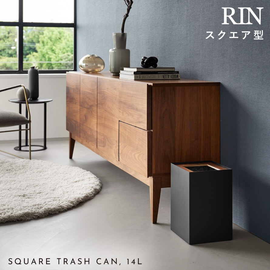 トラッシュカン リン 角型 14L 山崎実業 RIN ゴミ箱 袋 見えない リビング おしゃれ モノトーン ホワイト ブラック 10594 10595