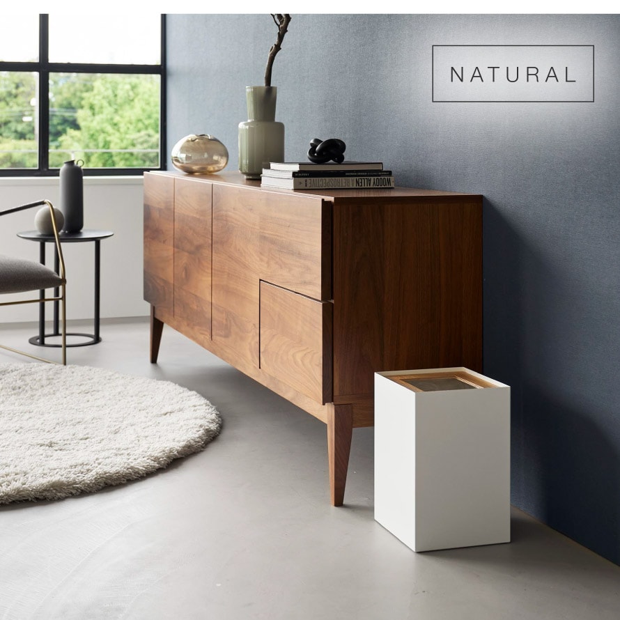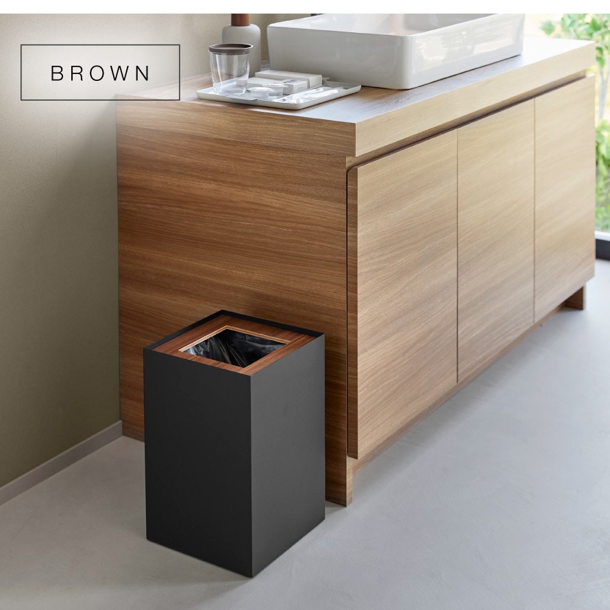 暖かみのある天然木と、スタイリッシュなスチールを組み合わせた美しいスクエア型トラッシュカン。