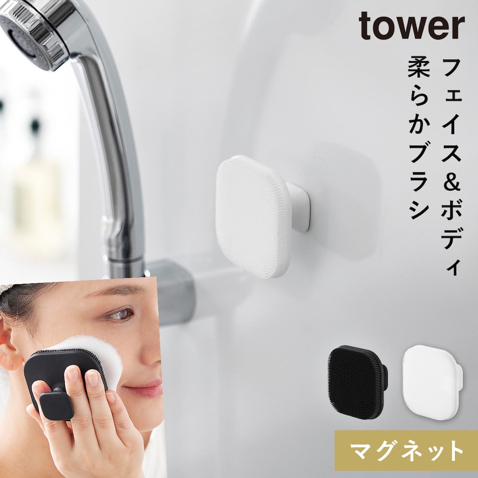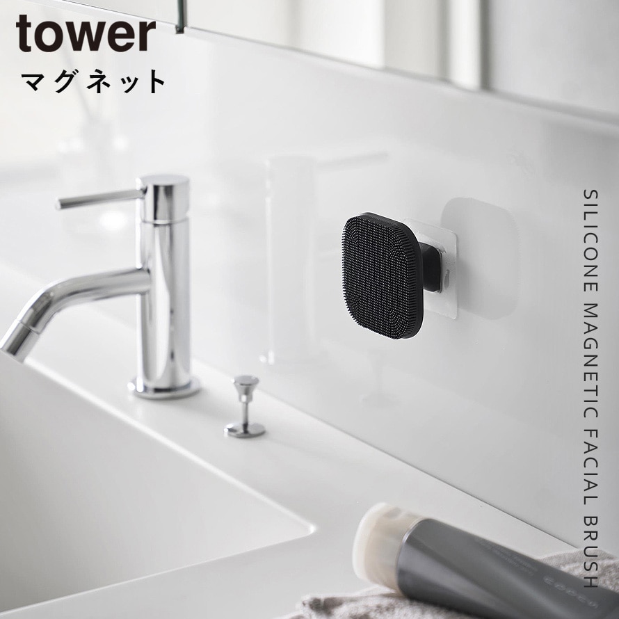 マグネットシリコーンフェイシャルブラシ タワー 山崎実業 tower 毛穴 洗顔ブラシ シリコン フェイシャルブラシ おしゃれ モノトーン ホワイト ブラック 10614 10615