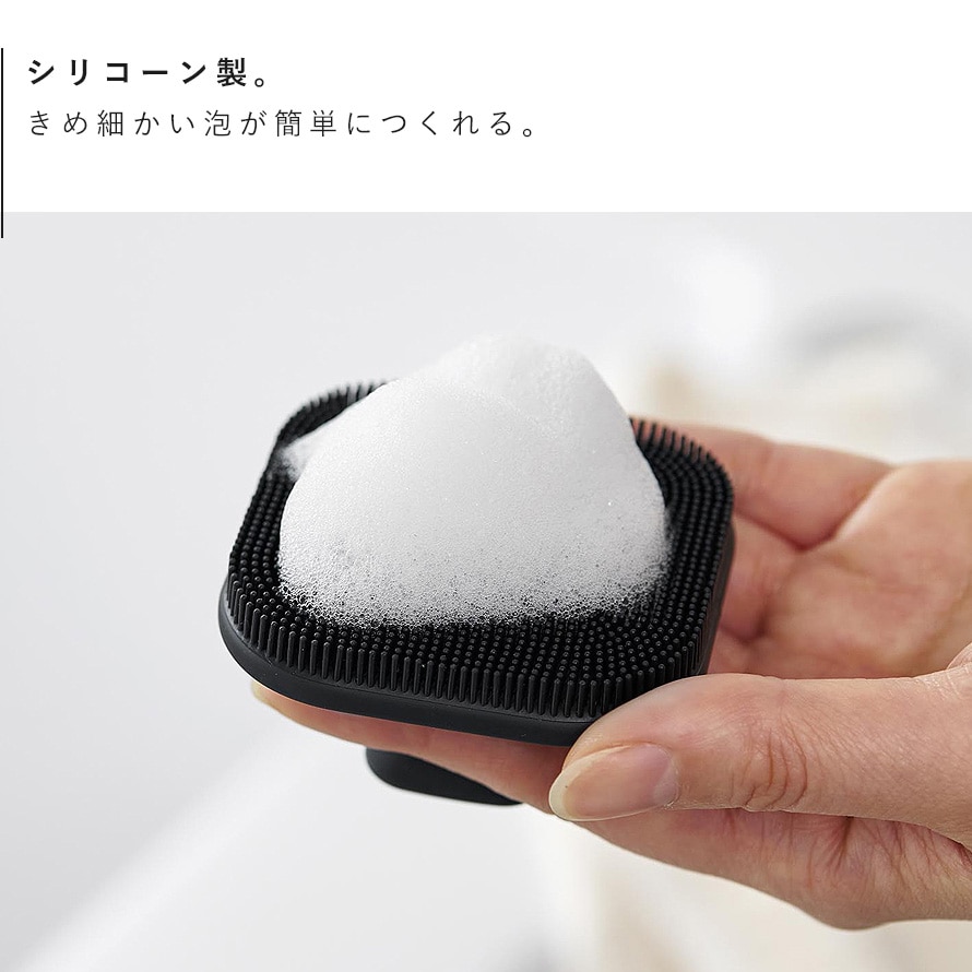 きめ細かく泡立つ、やわらかいシリコーン製のフェイシャルブラシです。