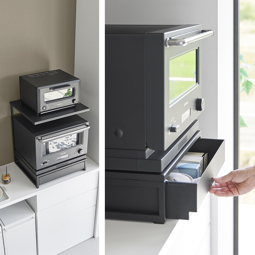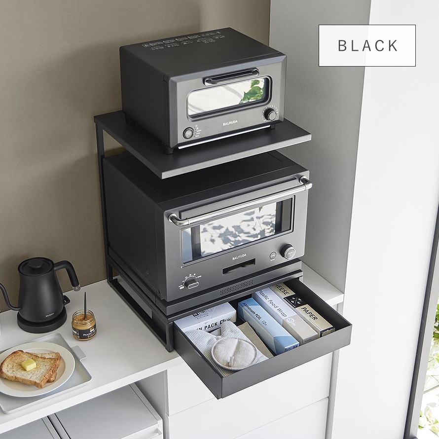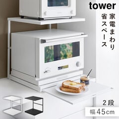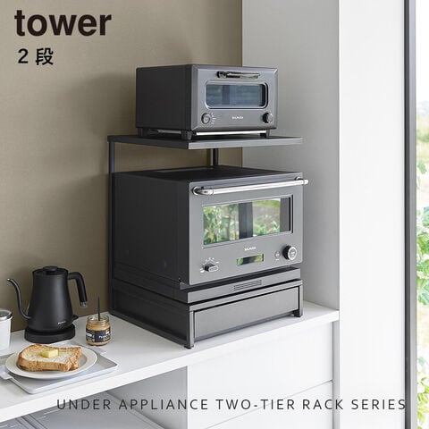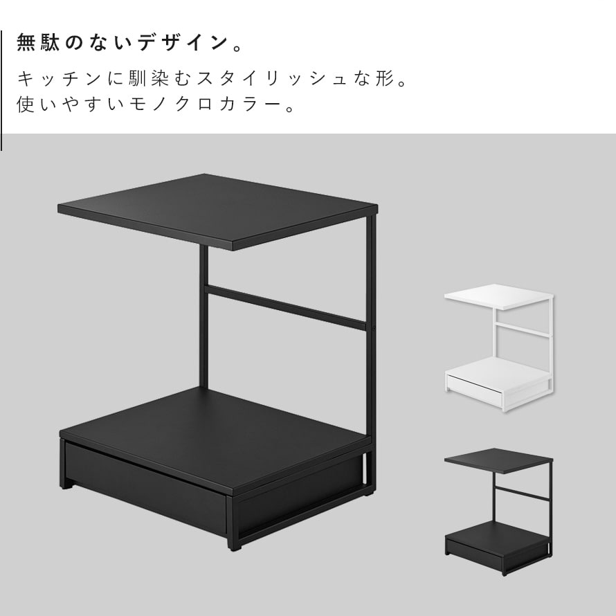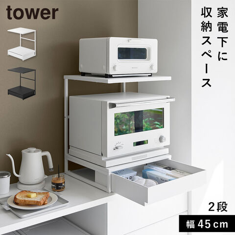 引き出し付きキッチン家電下ラック タワー 2段 山崎実業 tower レンジ上ラック 引き出し付 トースターラック 家電下ラック おしゃれ モノトーン ホワイト ブラック 10654 10655