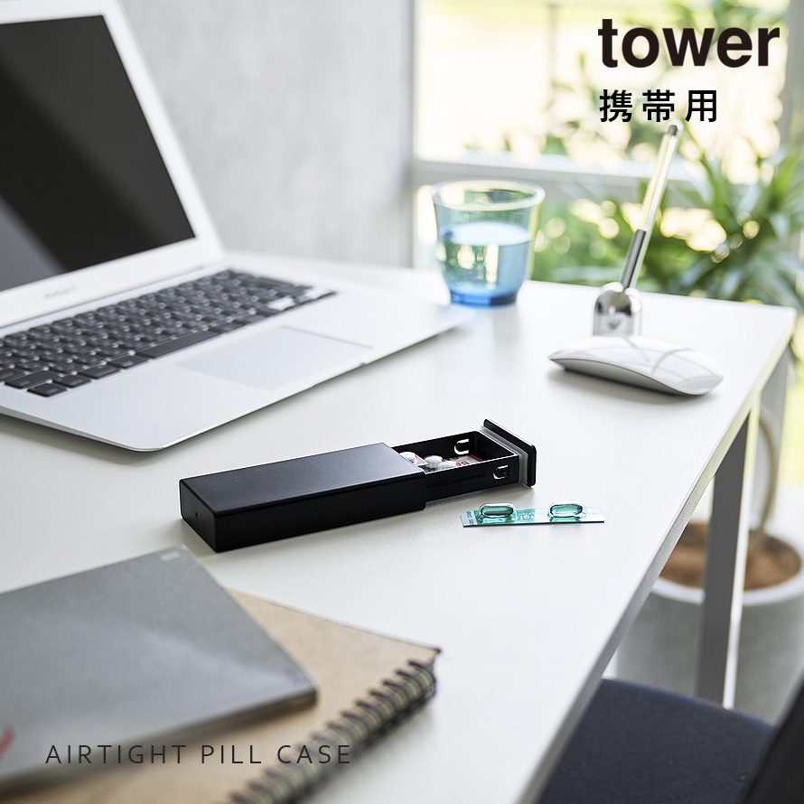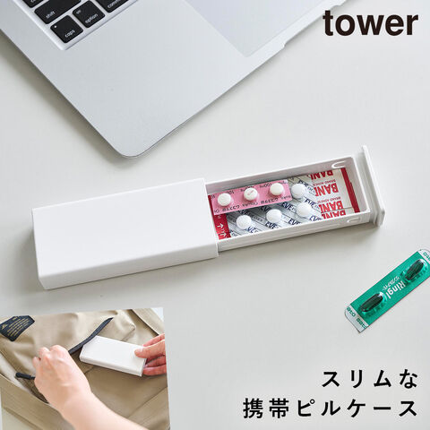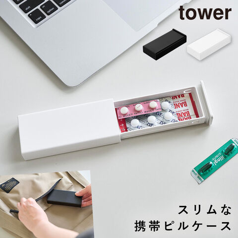密閉スリムピルケース タワー 山崎実業 tower ピルケース スライド式 1週間 携帯用 持ち運び おしゃれ モノトーン ホワイト ブラック 10662 10663