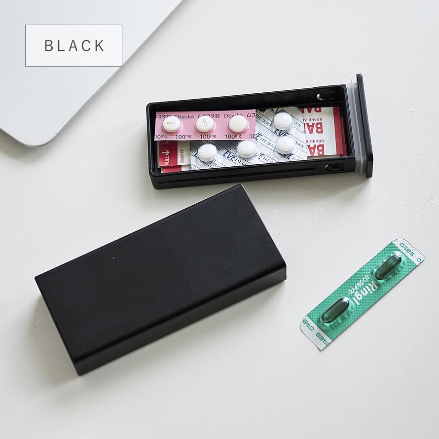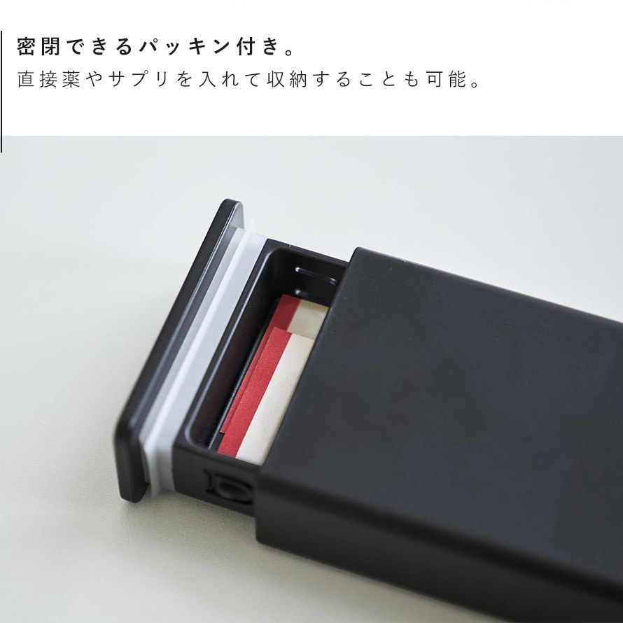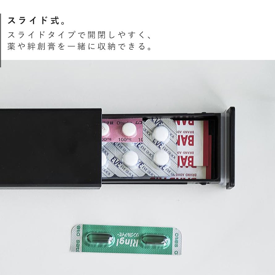 スライド式で開閉しやすく、薬や絆創膏を一緒に収納できます。