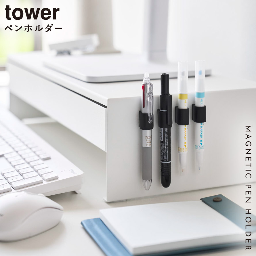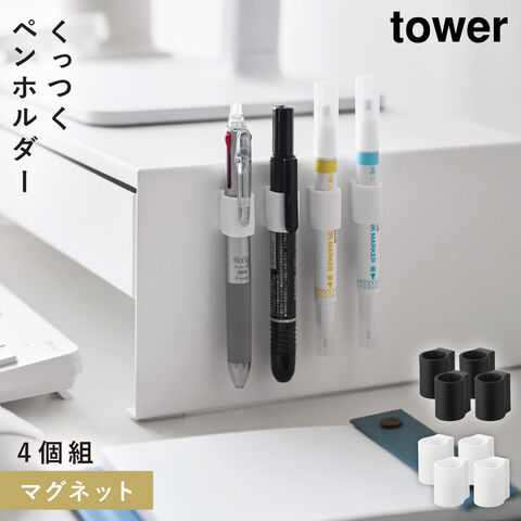 マグネットペンホルダー タワー 4個組 山崎実業 tower ペンホルダー 壁 玄関 マグネット収納 おしゃれ モノトーン ホワイト ブラック 10733 10734