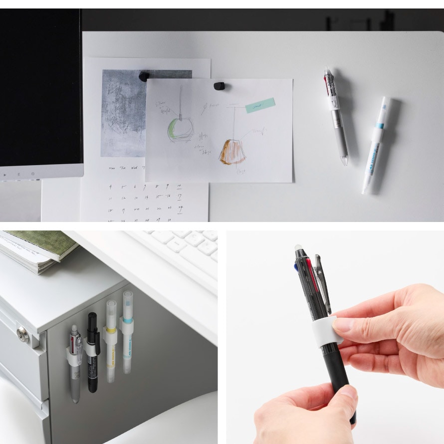 やわらかなシリコーン素材がペンにやさしくフィットし、しっかりホールド。定位置管理ができるので、紛失防止にも役立ちます。