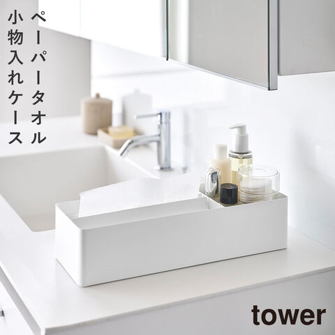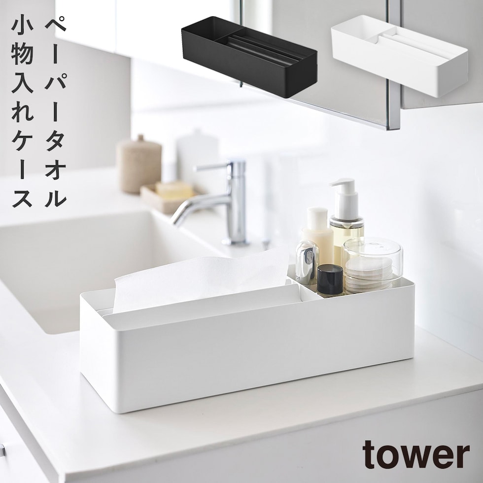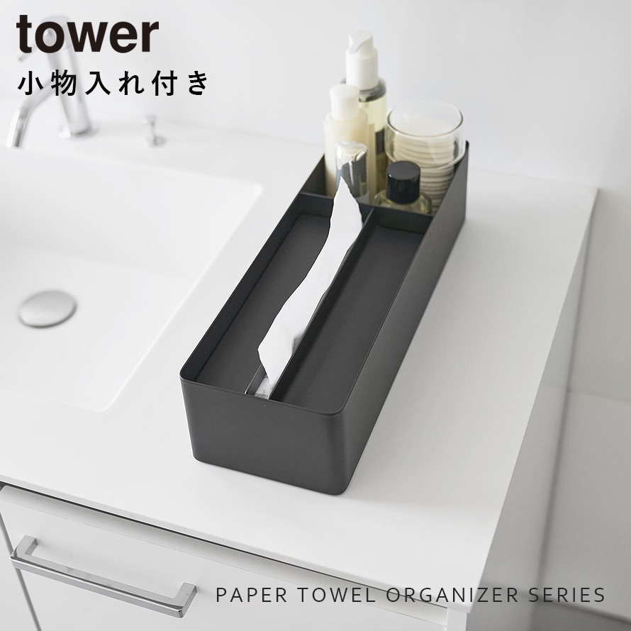 ペーパータオル&バニティオーガナイザー タワー 山崎実業 tower ペーパータオルホルダー 置き型 洗面台 小物入れ おしゃれ モノトーン ホワイト ブラック 10743 10744