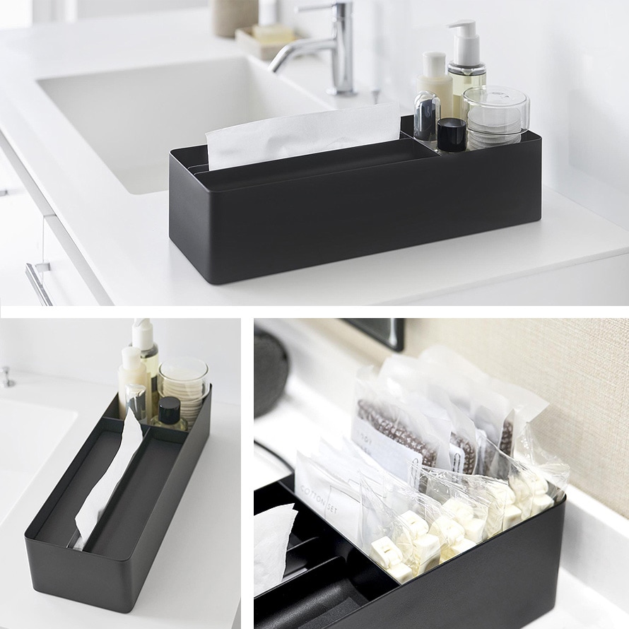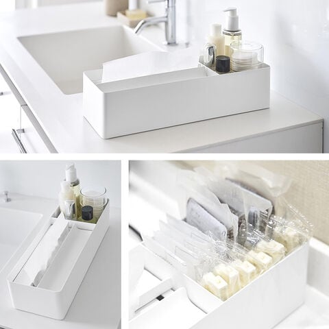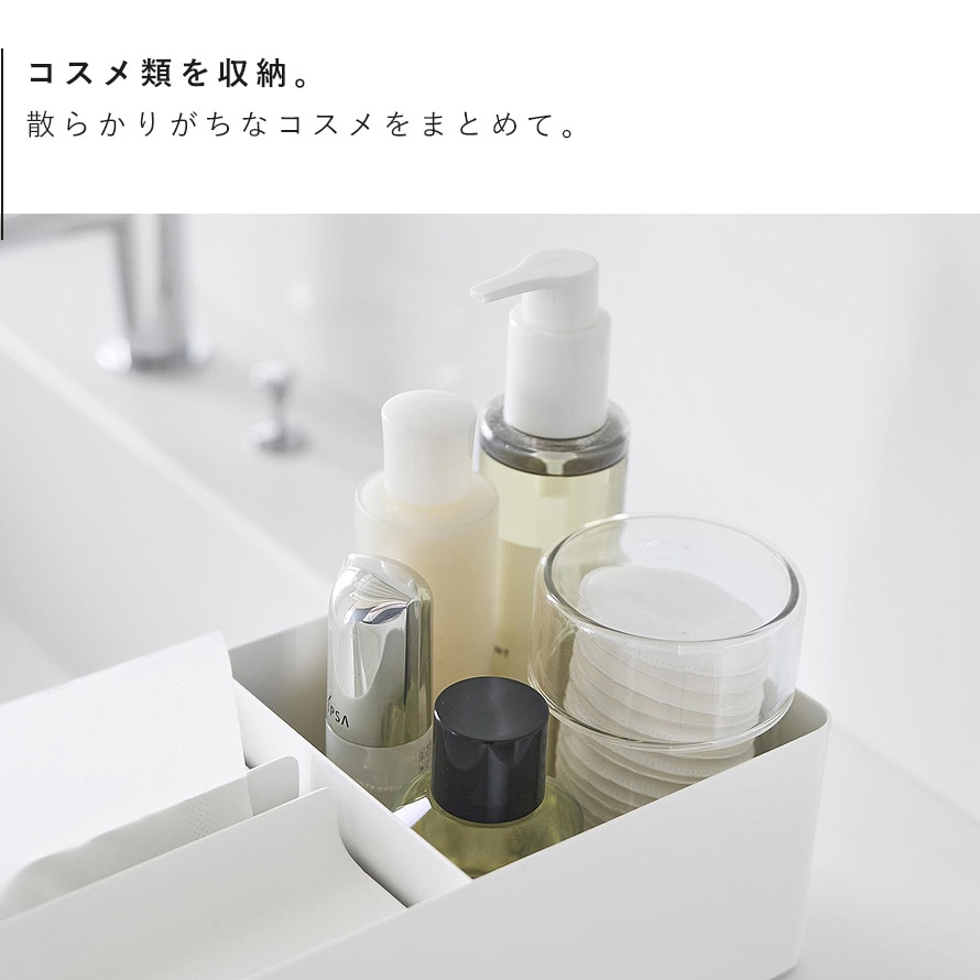 散らかりがちなコスメをまとめてすっきり収納できる、ペーパータオルと小物入れが一緒になったオーガナイザー。