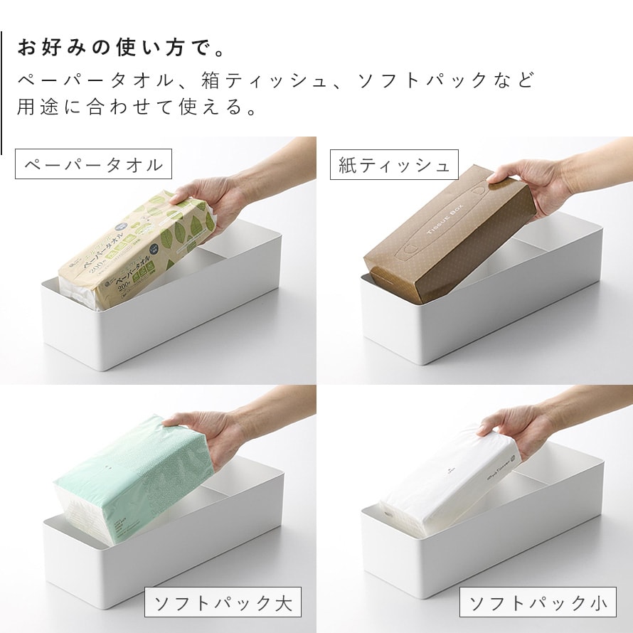 ペーパータオルはもちろん、箱ティッシュやソフトパックにも対応しています。