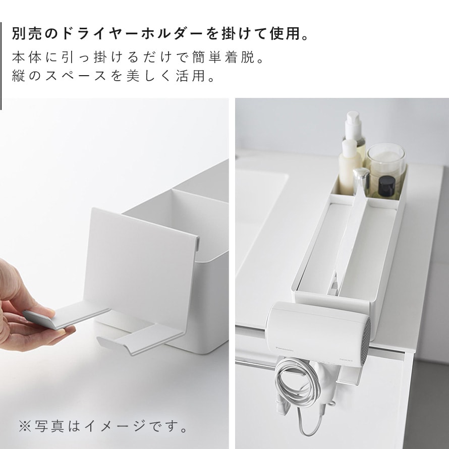 別売のドライヤーホルダーを引っ掛ければ、縦スペースをきれいに使えるオーガナイザーに変身!
