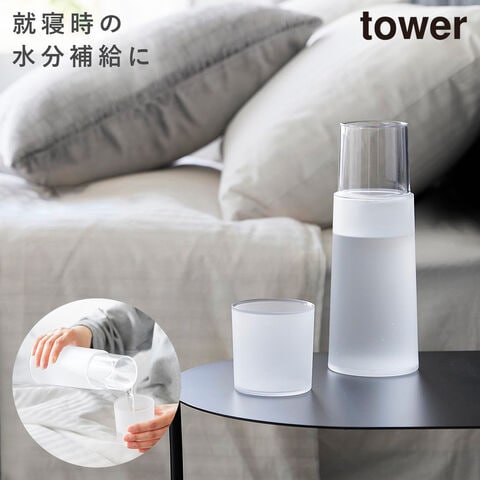 ベッドサイドカラフェ タワー 山崎実業 tower カラフェ ウォーターピッチャー ウォーターボトル おしゃれ モノトーン ホワイト ブラック 10757 10758