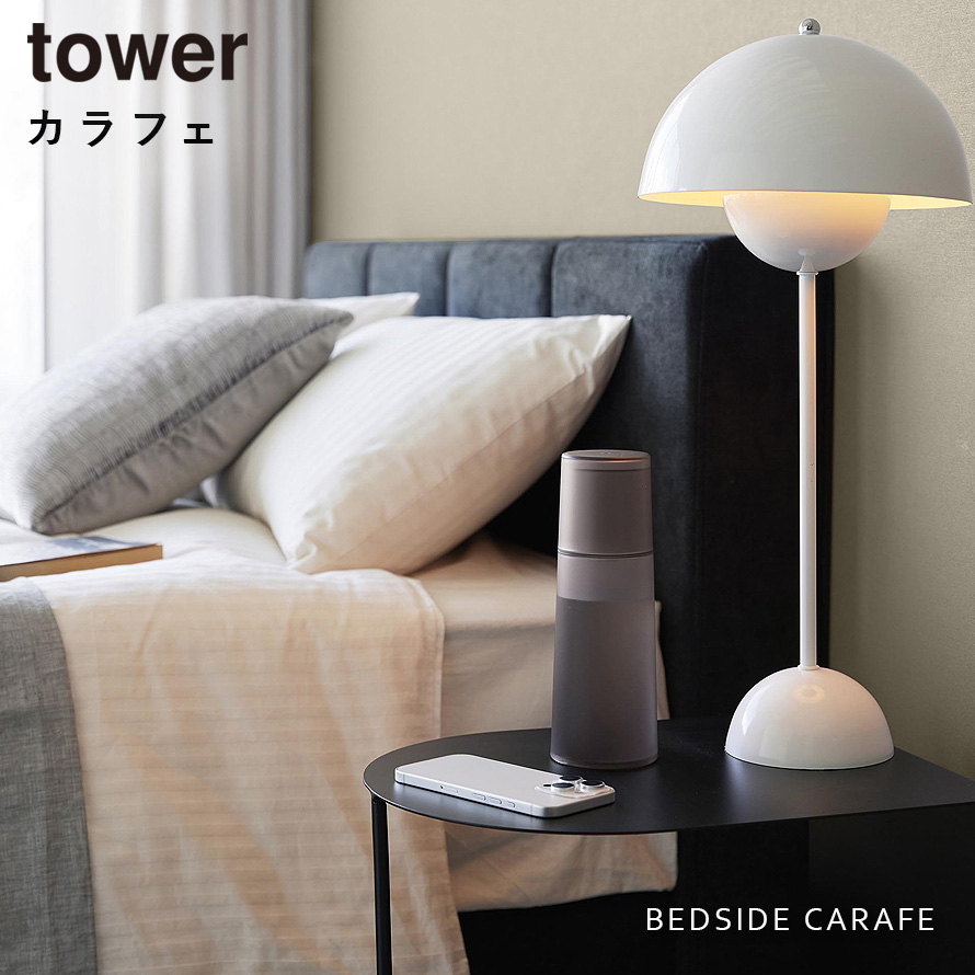 ベッドサイドカラフェ タワー 山崎実業 tower カラフェ ウォーターピッチャー ウォーターボトル おしゃれ モノトーン ホワイト ブラック 10757 10758