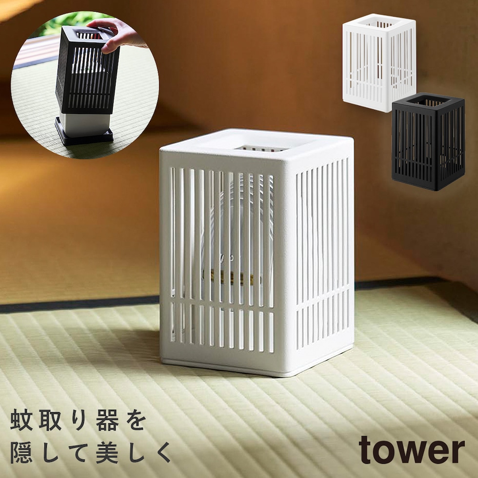 蚊取り器カバー タワー 山崎実業 tower 虫よけ 置き型 カバー 虫除け 玄関 おしゃれ モノトーン ホワイト ブラック 10769 10770