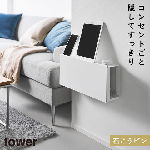コンセントごと隠せる壁付けケーブルラック タワー タワー 山崎実業 tower ルーター 収納 ケーブル ボックス コンセント 隠し 壁掛け おしゃれ モノトーン ホワイト ブラック 10785 10786