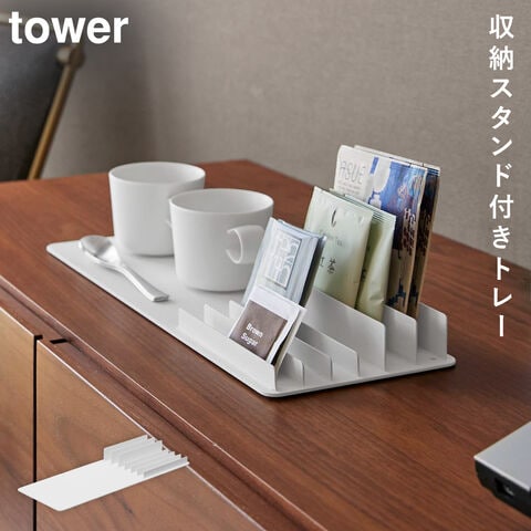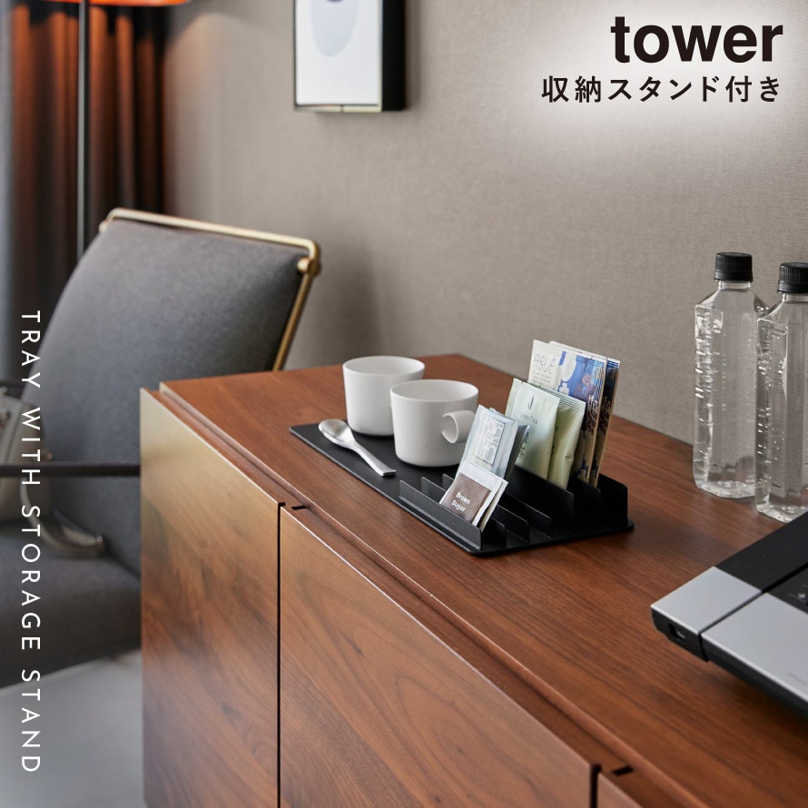 収納スタンド付きトレー タワー 山崎実業 tower アメニティ トレイ コーヒー セット ティーパック 収納 おしゃれ モノトーン ホワイト ブラック 10797 10798