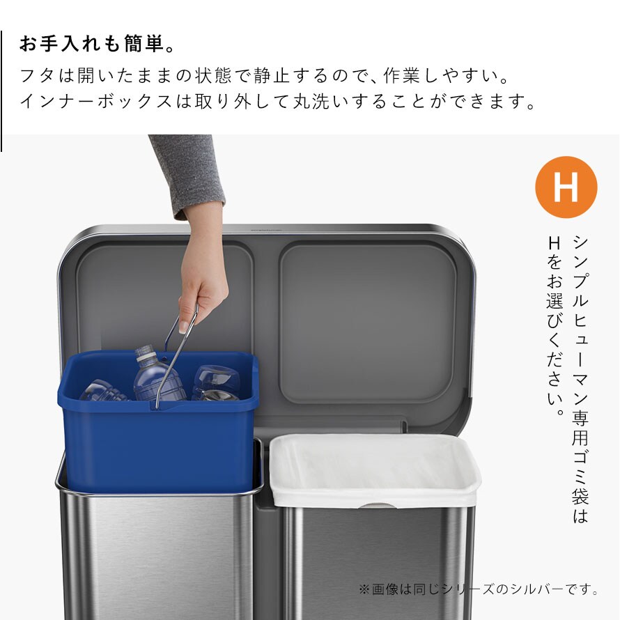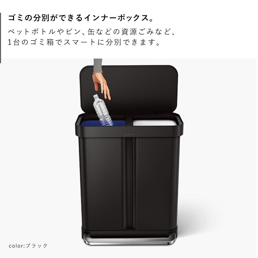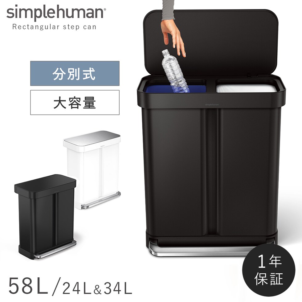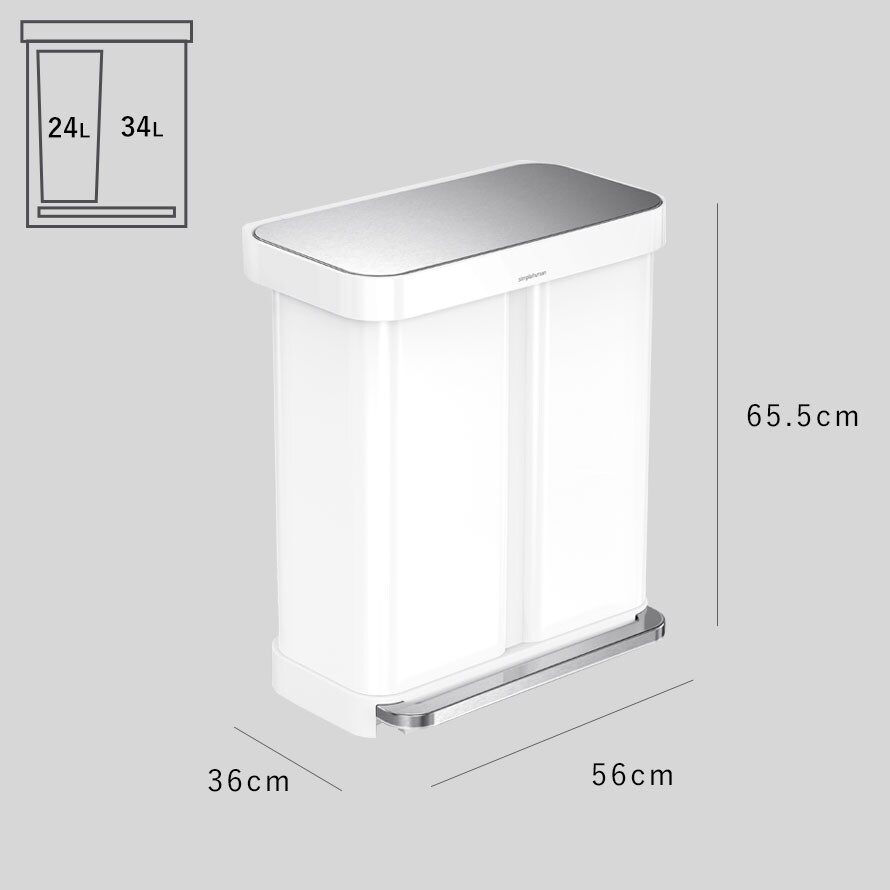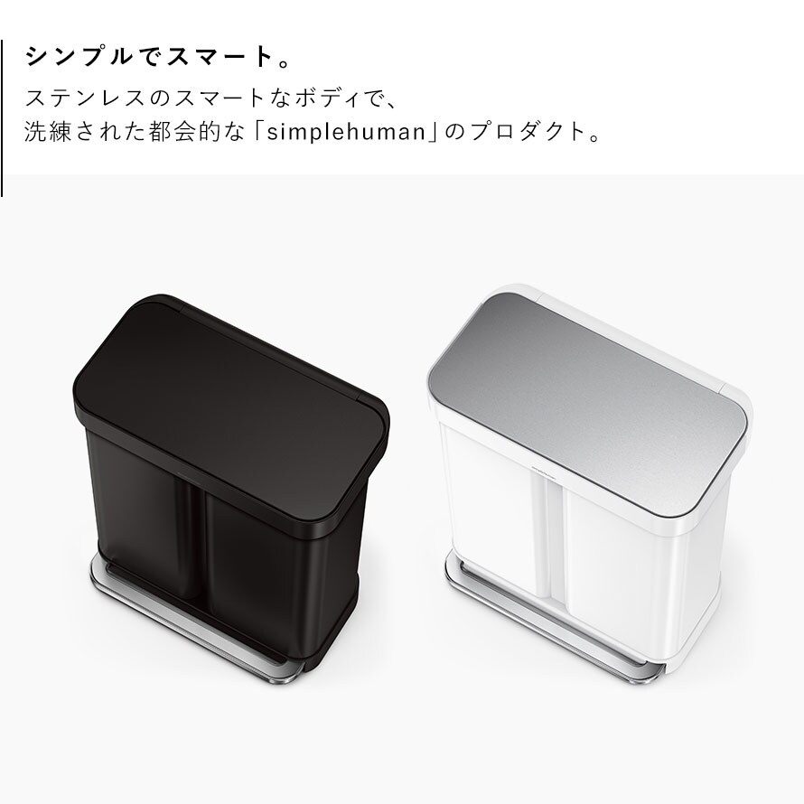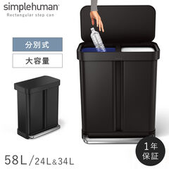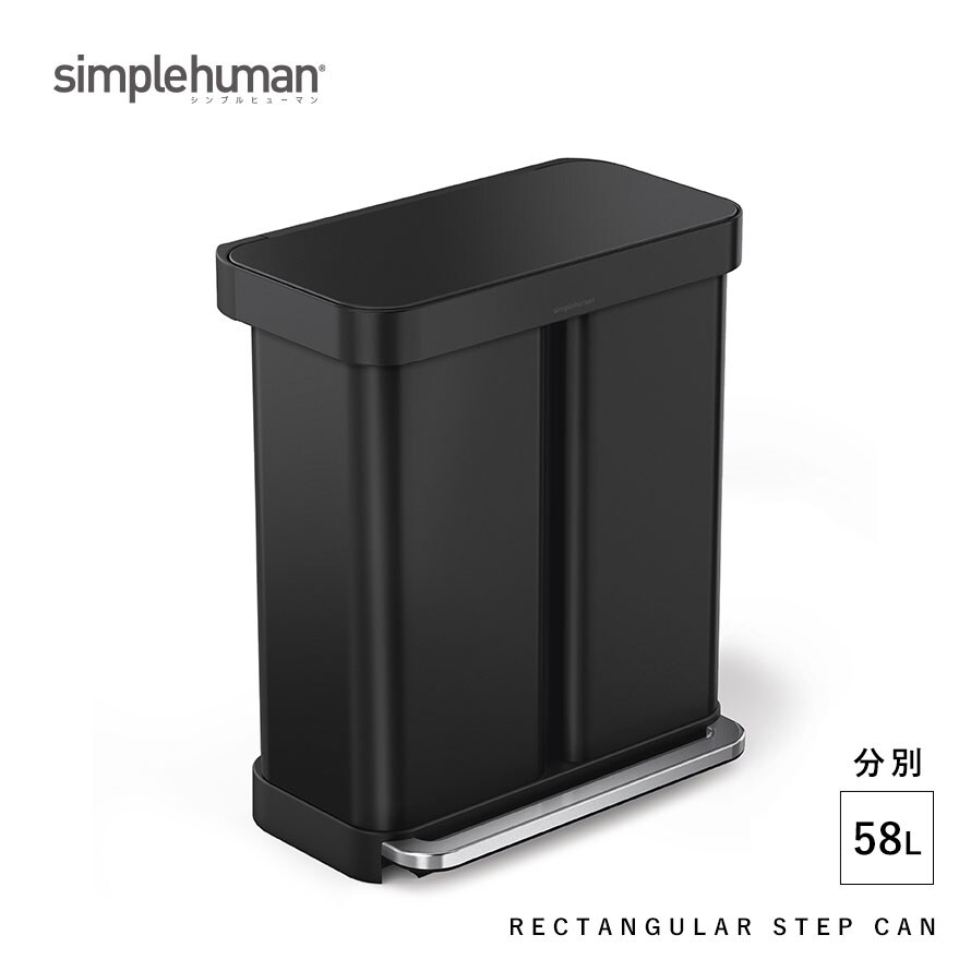 simplehuman シンプルヒューマン 【正規代理店・1年保証付】ゴミ箱 24+34L 分別 スリム ステンレス 大容量 キッチン ペダル式 おしゃれ シンプルヒューマン 分別レクタンギュラーステップカン 58L