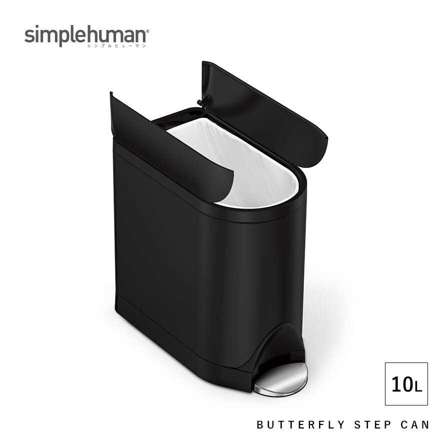 simplehuman シンプルヒューマン 【正規代理店・1年保証付】ゴミ箱 小さい 蓋付き ペダル式 10L ステンレス おしゃれ シンプルヒューマン バタフライステップカン BK 10L