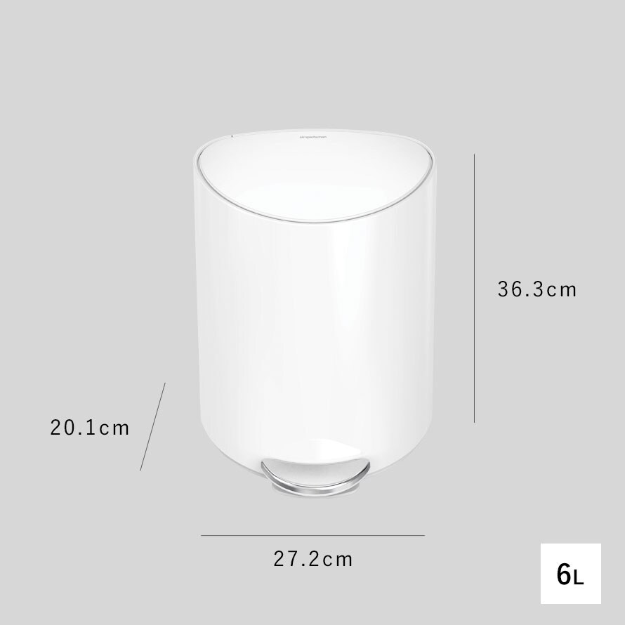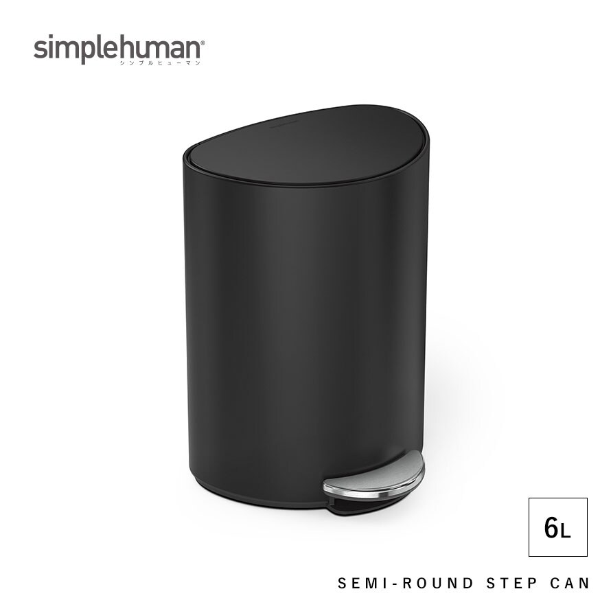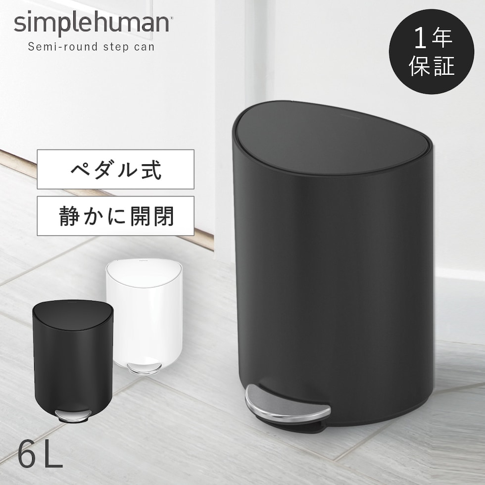 simplehuman シンプルヒューマン 【正規代理店・1年保証付】ゴミ箱 小さい 蓋付き ペダル式 6L ステンレス おしゃれ シンプルヒューマン セミラウンドステップカン 6L BK WH