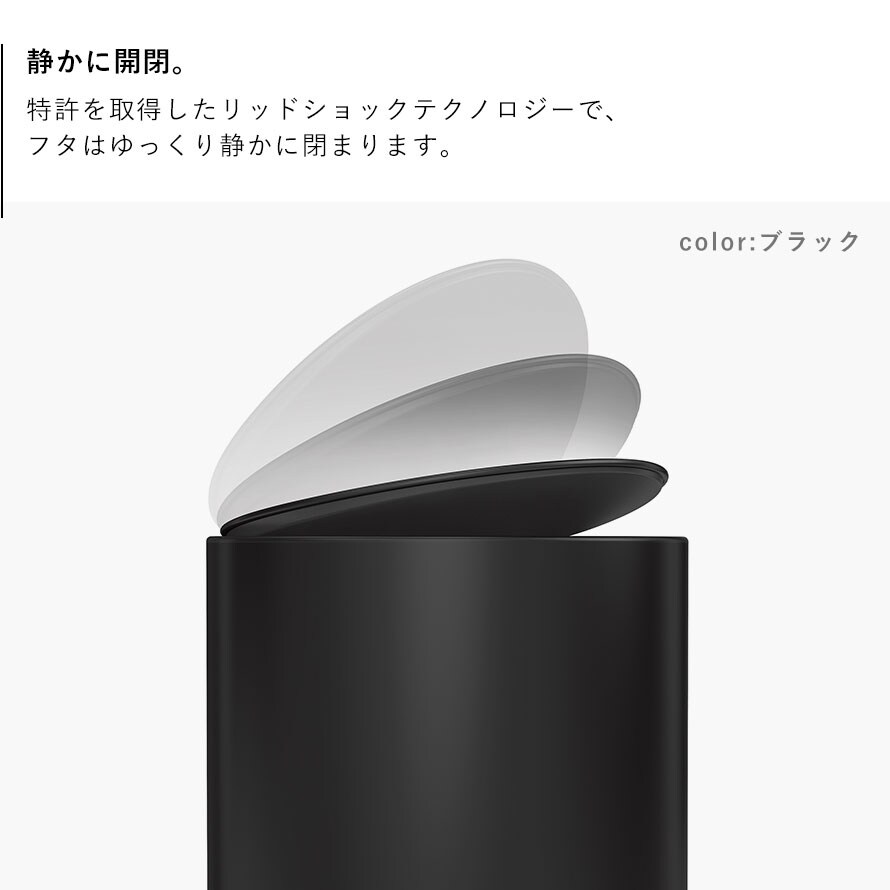 また特許を取得したリッドショックテクノロジーで、フタはゆっくりと静かに閉まります。