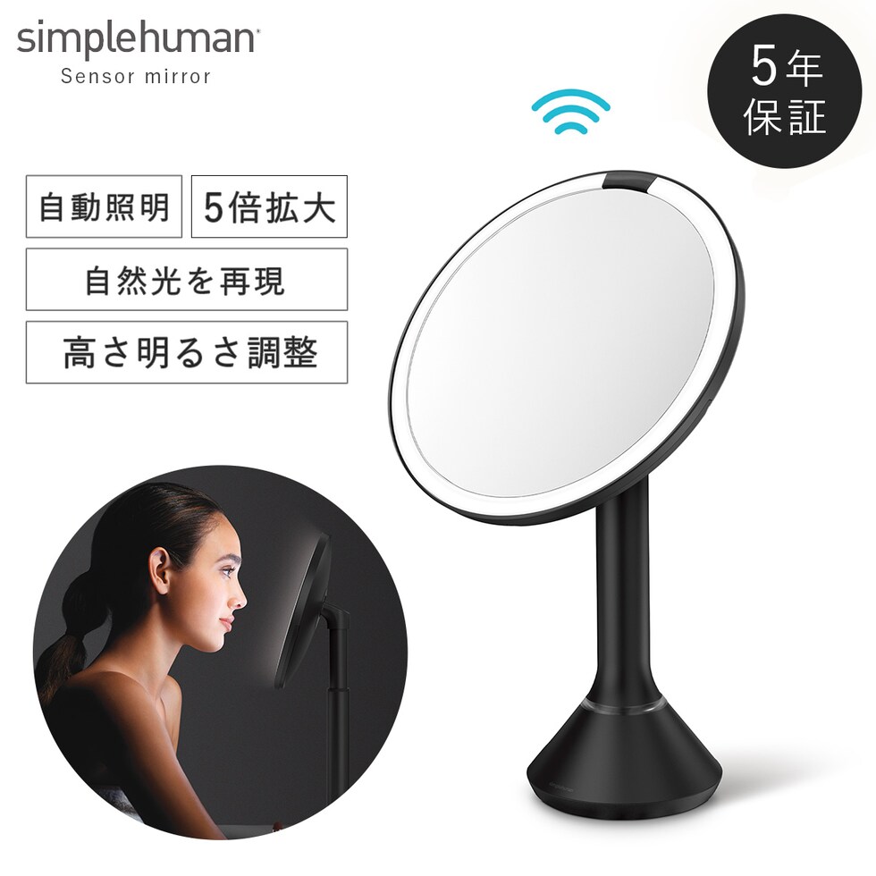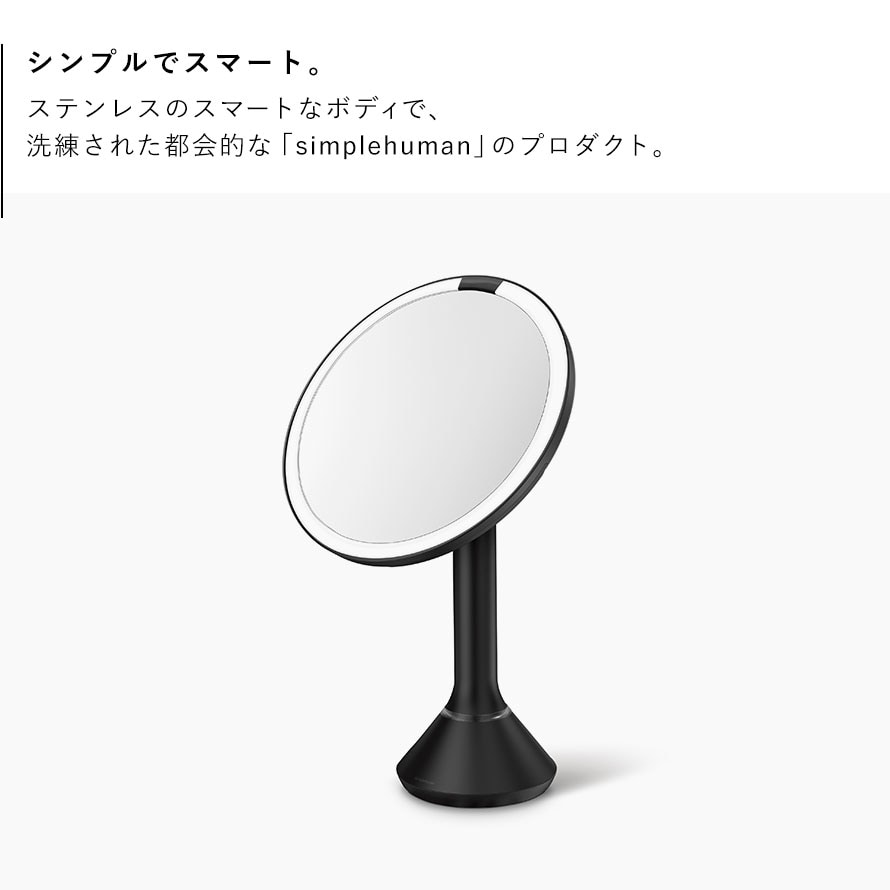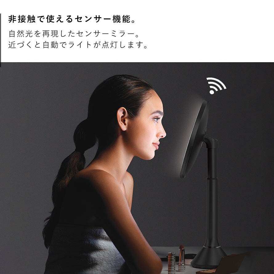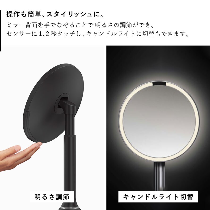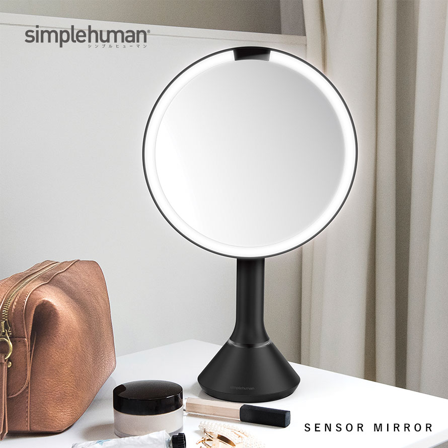 simplehuman シンプルヒューマン 【正規代理店・5年保証付】メイク ミラー ライト メイクミラー 卓上ミラー ライト付き 鏡 化粧 卓上 女優ミラー 充電式 メイクアップ 自然光 センサーメイクアップミラー ブライトネスタッチコントロール BK